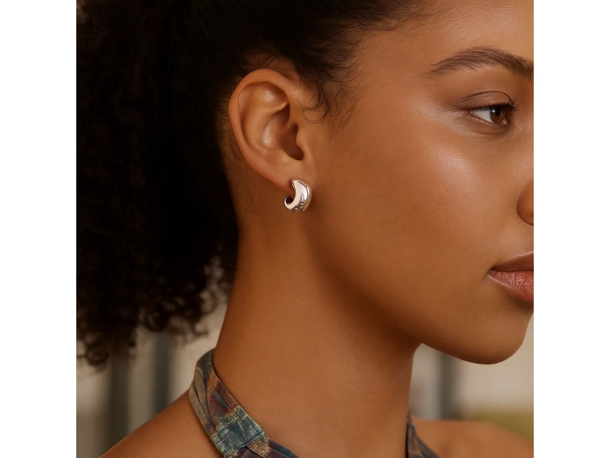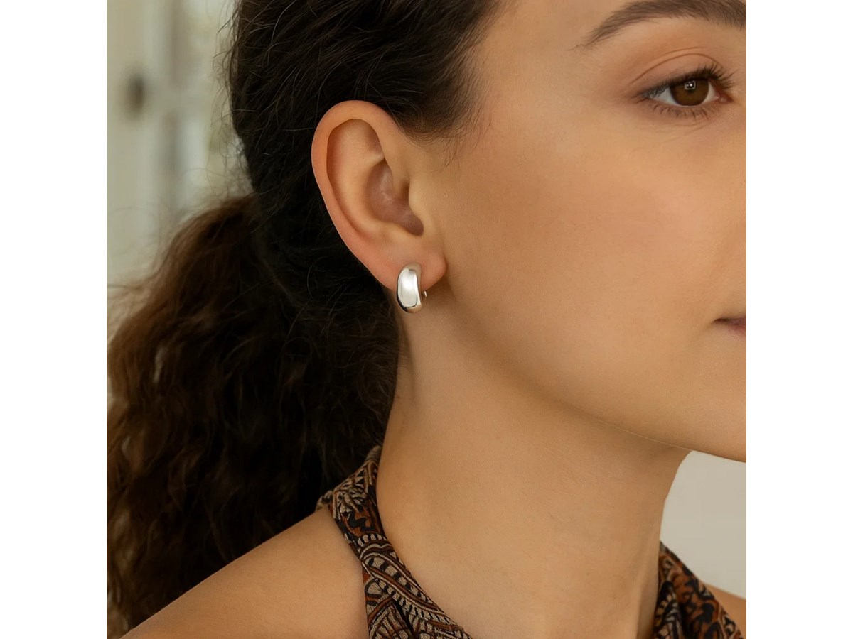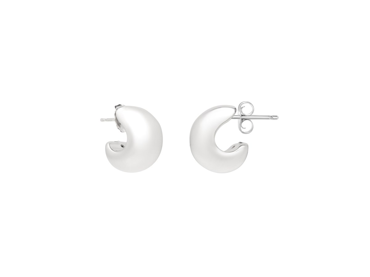 Elegant sterling silver C hoop earrings featuring a polished finish and modern open-hoop design. The sleek C shape offers a contemporary twist on a classic style, making these earrings perfect for everyday wear or refined evening looks.