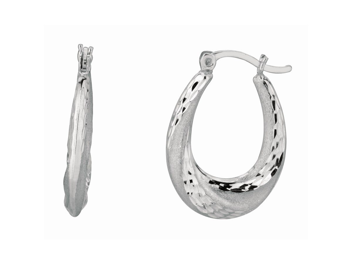 Elegant sterling silver diamond cut and polished twist puffed hoop earrings featuring a shimmering textured design with a radiant finish. The diamond-cut detailing enhances sparkle, while the twisted puffed shape adds depth and sophistication for a timeless, eye-catching look.