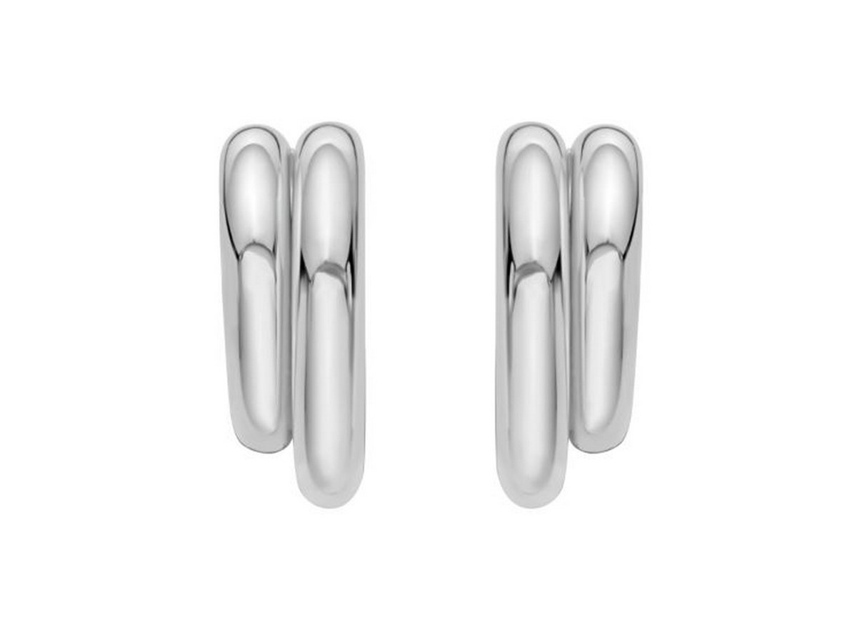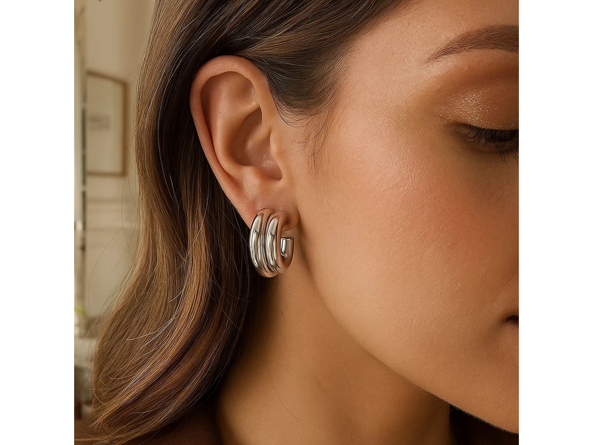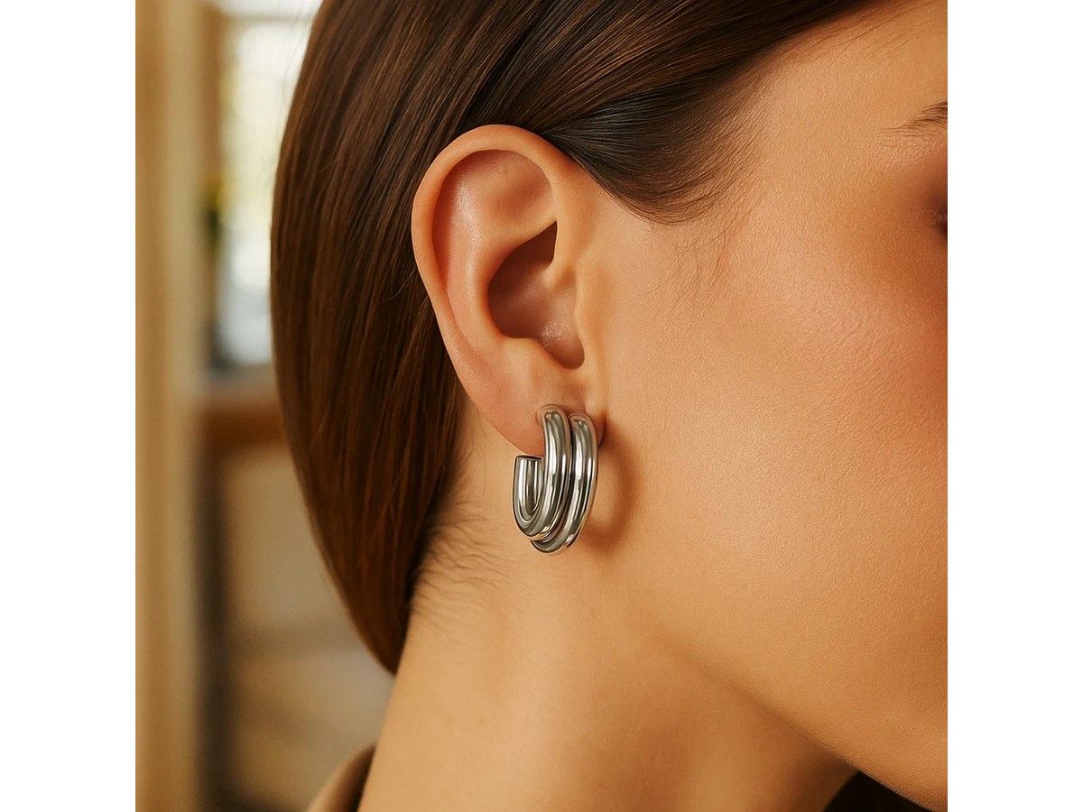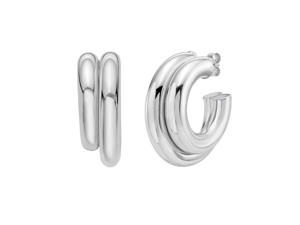 Elegant sterling silver double row big and small round hoop earrings featuring a polished finish and interlocking circular design. The combination of large and small hoops adds depth and movement, creating a timeless and sophisticated look perfect for any occasion.