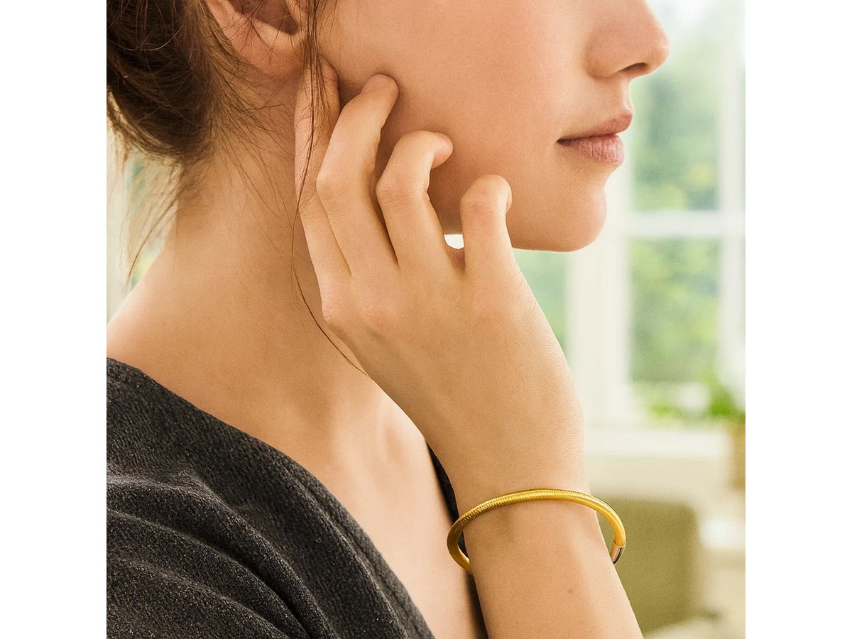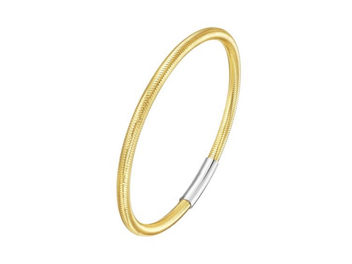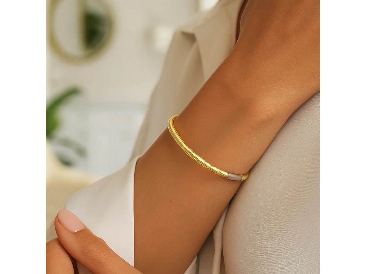 Sterling Silver Gold-Plated Basketweave Stretch Bangle featuring an intricate basketweave pattern crafted in sterling silver with a warm gold-plated finish. Its flexible stretch design offers a comfortable fit and a stylish, textured look perfect for everyday wear or stacking.
