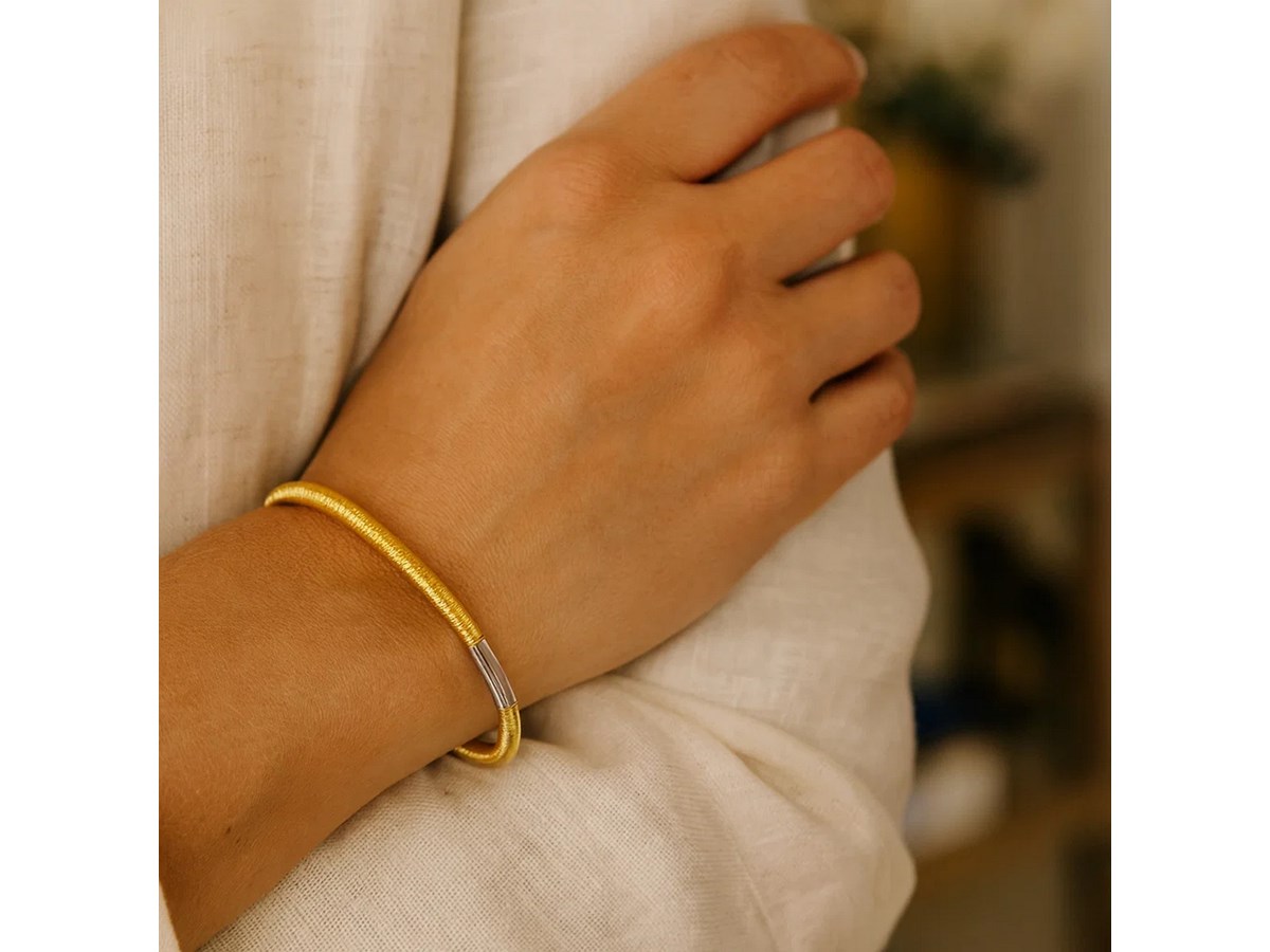 Sterling Silver Gold Plated Basketweave Stretch Bangle