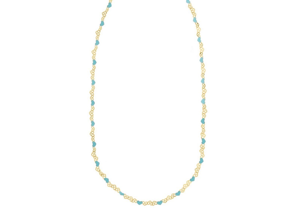 Add a playful touch of color with this Sterling Silver Gold Plated Blue Enamel Hearts Necklace. Featuring bright blue enamel heart charms on a warm gold-plated sterling silver chain, it delivers a fun yet elegant accent to any outfit. Perfect for everyday wear, gifting, or layering with other favorites.