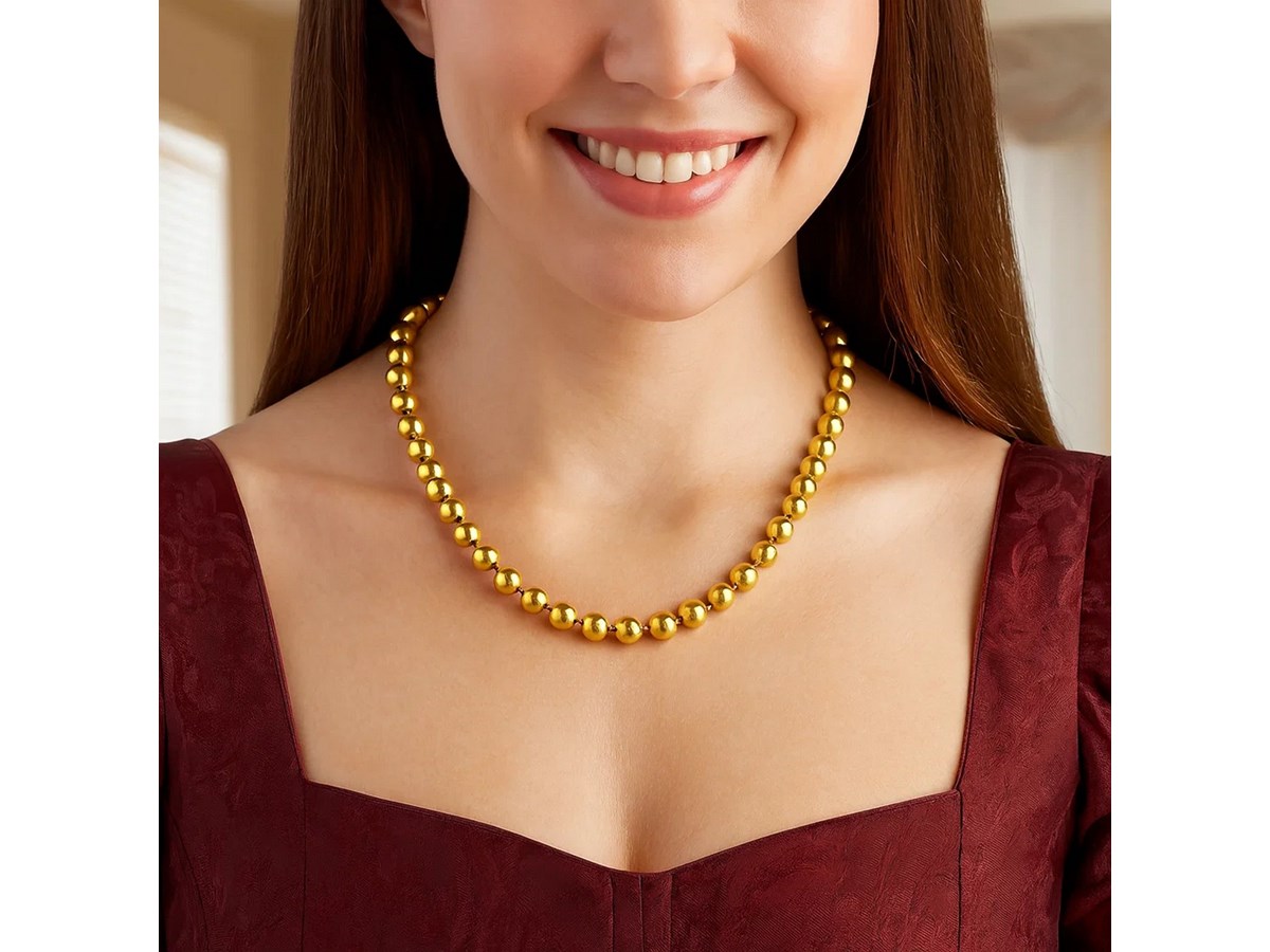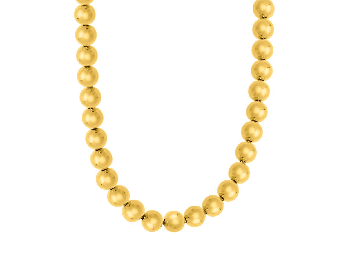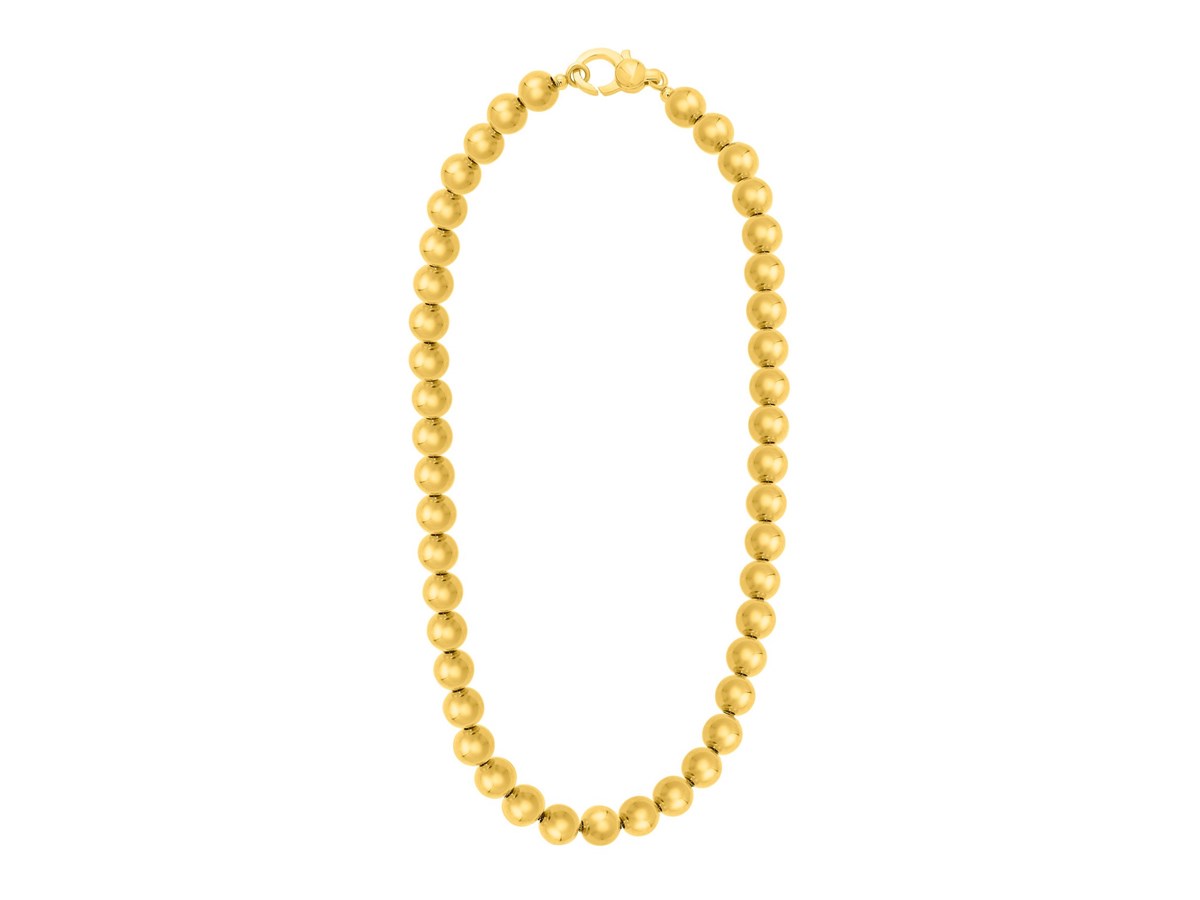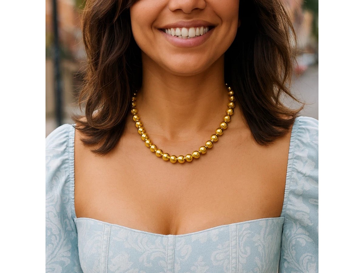 This necklace features large, polished sterling silver beads coated in rich gold plating for a radiant, eye-catching look. Its bold design adds effortless sophistication to any outfit, making it perfect for both everyday style and special occasions.