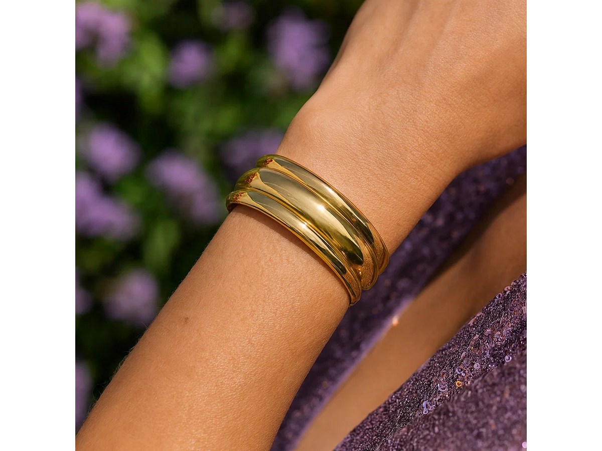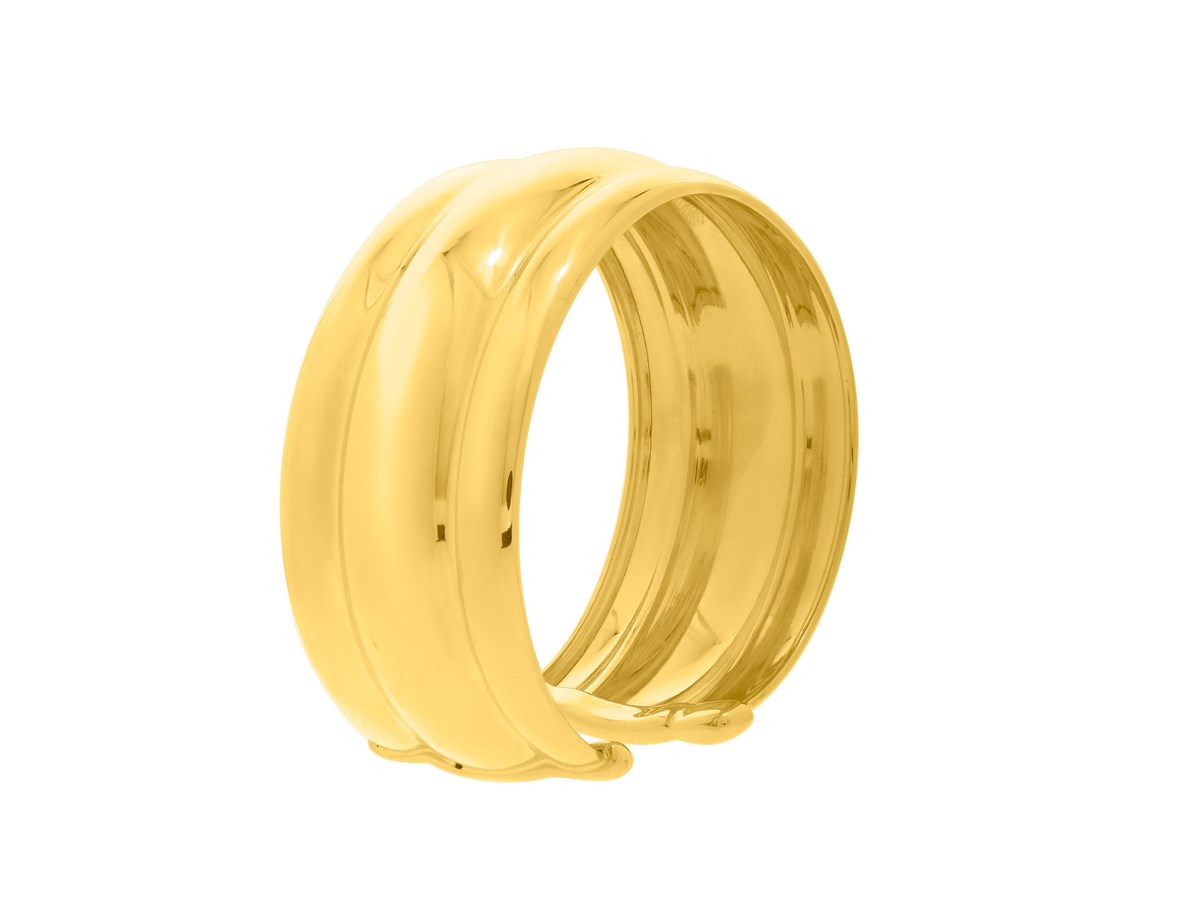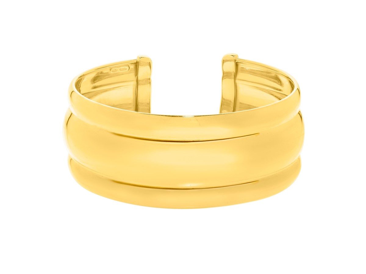 Sterling Silver Gold-Plated Bold Ribbed Cuff Bangle (25.00 mm) crafted in sterling silver with a radiant gold-plated finish. The wide 25 mm ribbed design creates a dramatic, sculptural look, while the open cuff silhouette ensures comfortable, effortless wear.