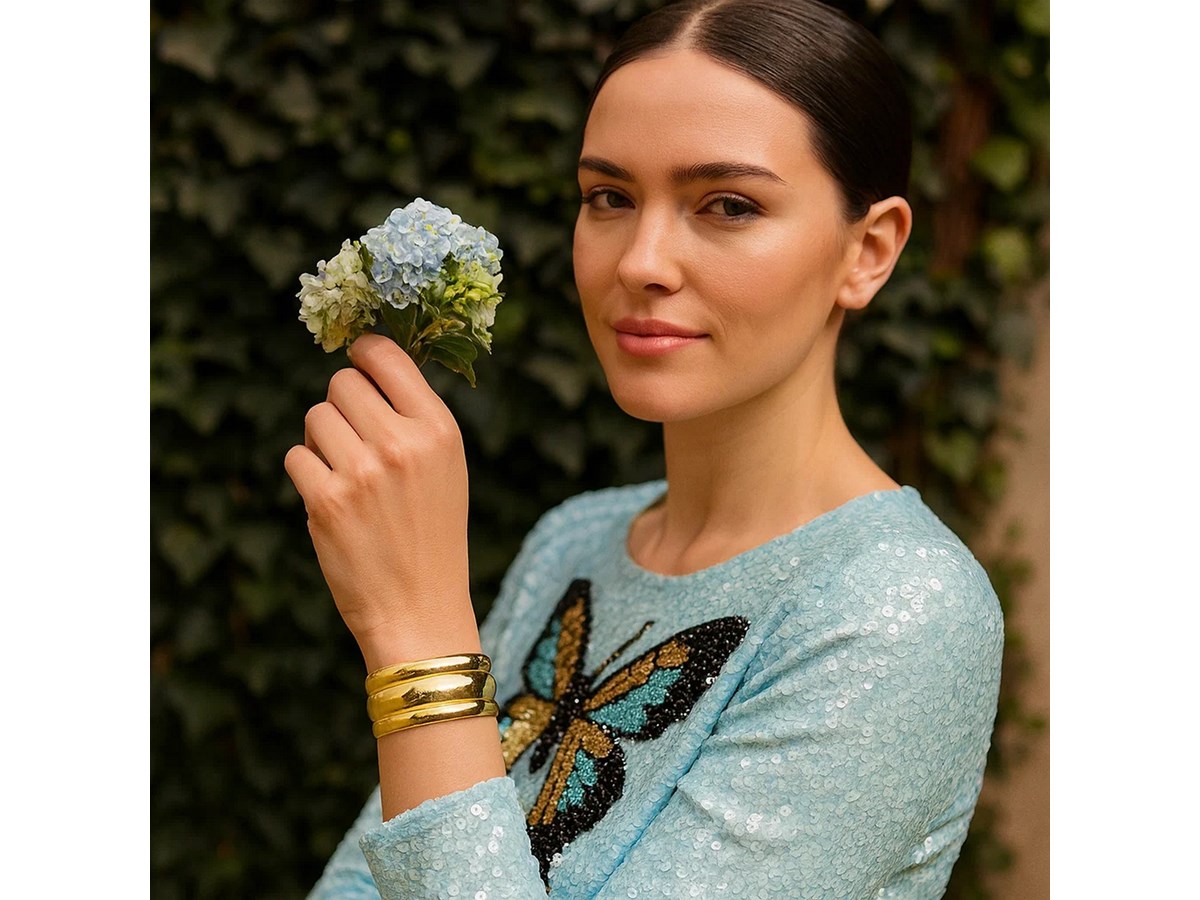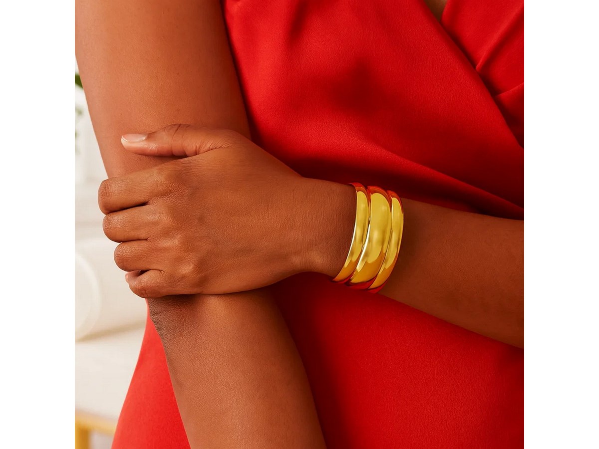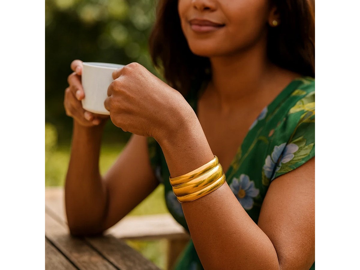 Sterling Silver Gold-Plated Bold Ribbed Cuff Bangle (25.00 mm) crafted in sterling silver with a radiant gold-plated finish. The wide 25 mm ribbed design creates a dramatic, sculptural look, while the open cuff silhouette ensures comfortable, effortless wear.