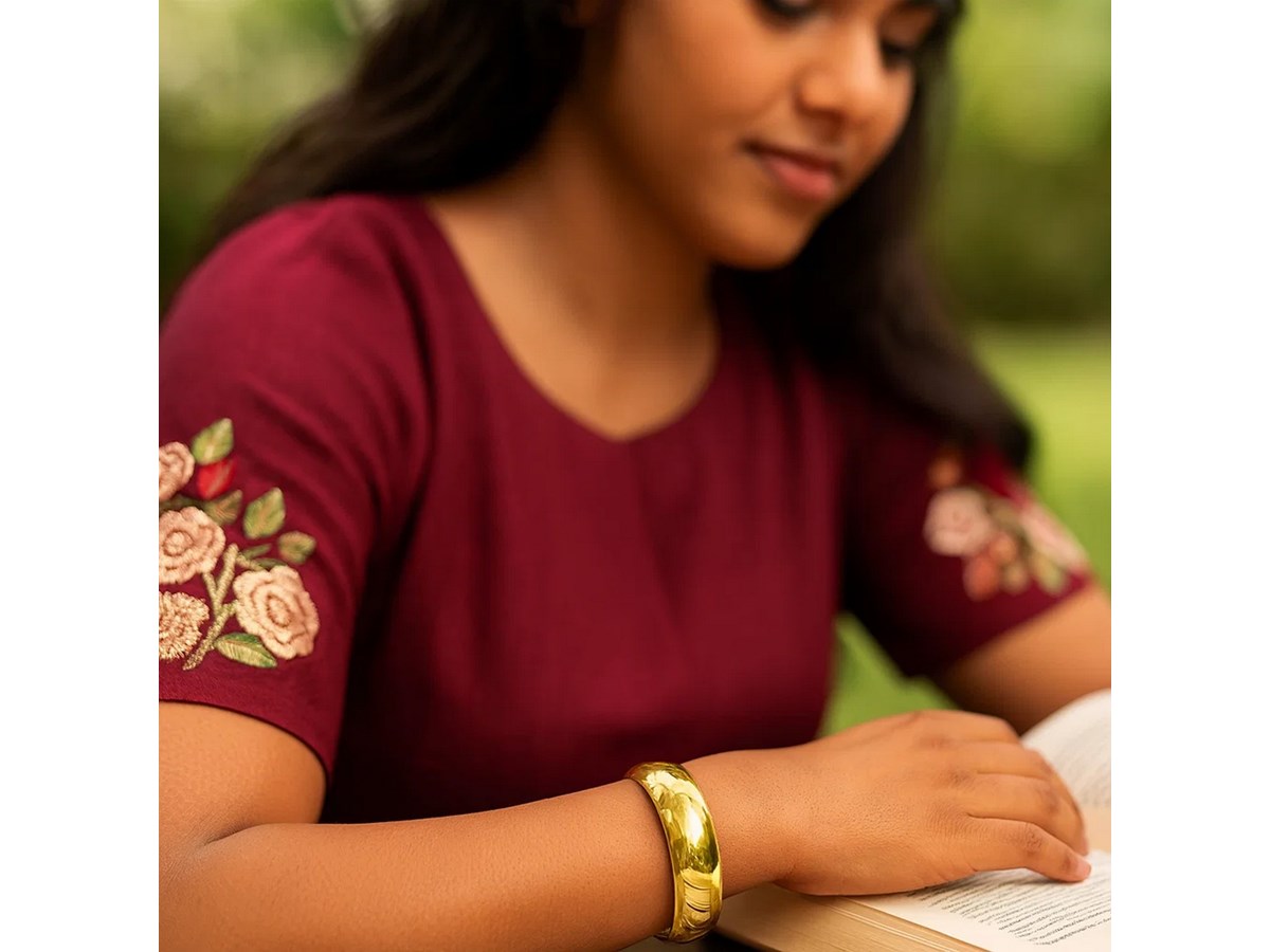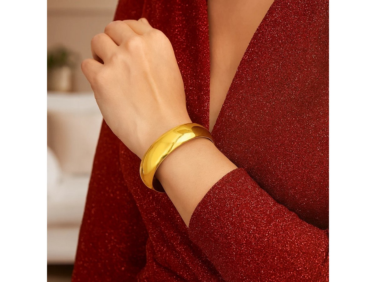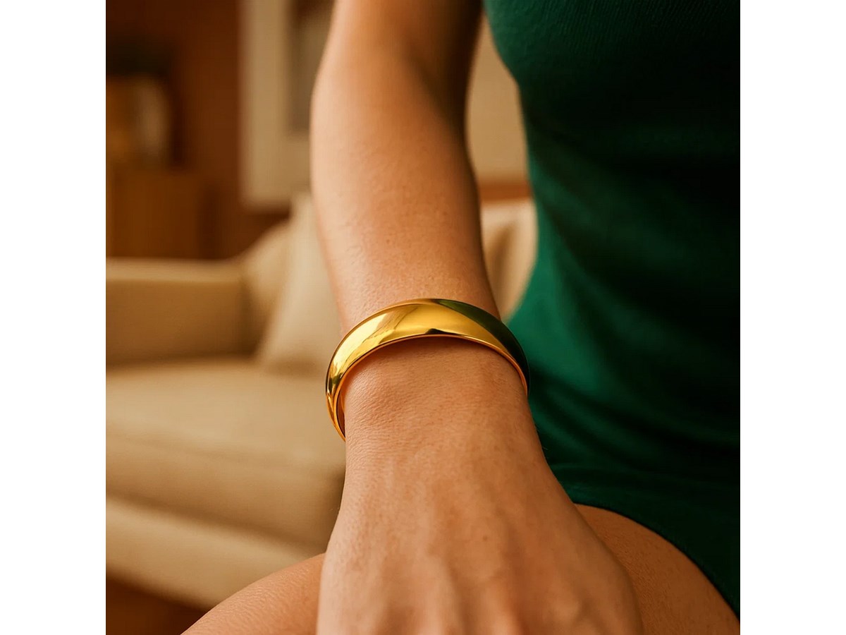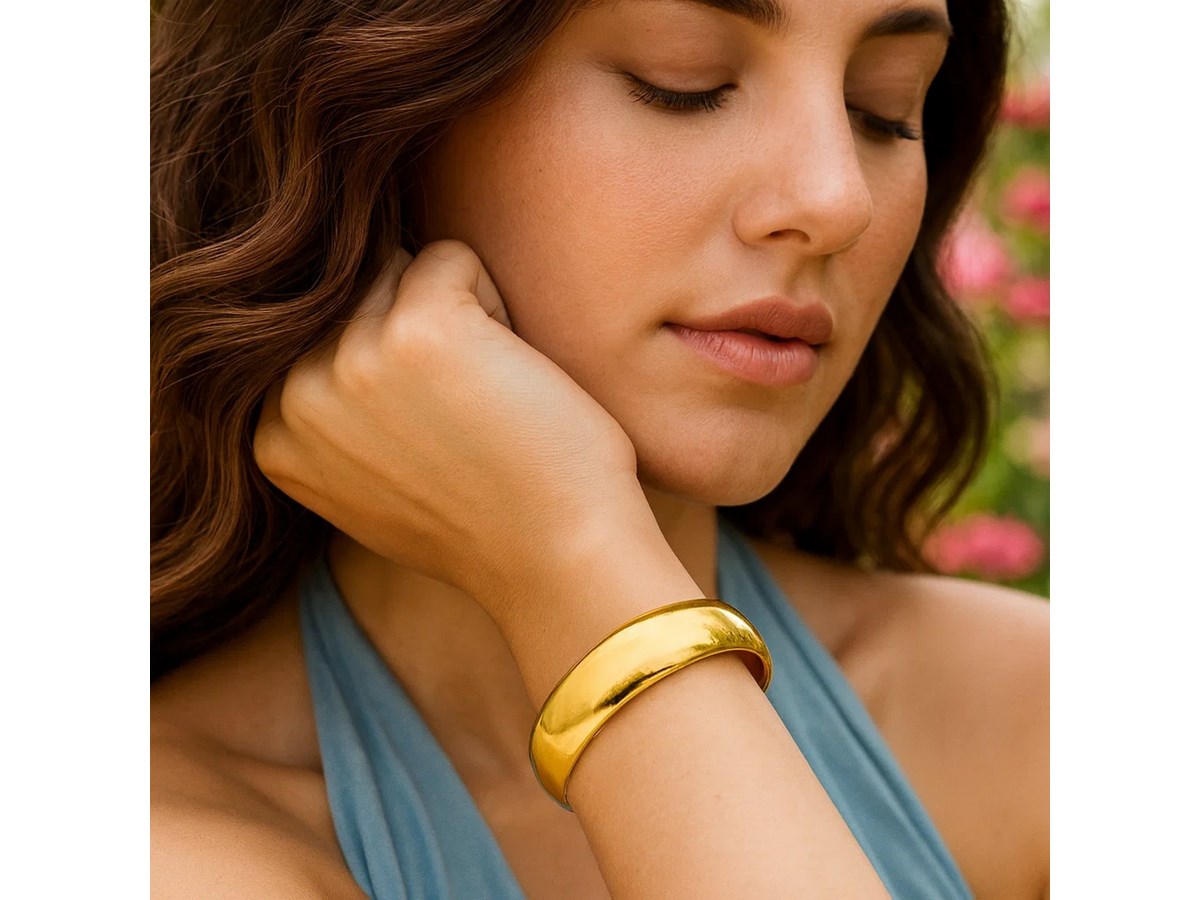 Sterling Silver Gold-Plated Domed Classic Bangle (18.50 mm) featuring a smooth, rounded dome silhouette crafted in sterling silver with a warm gold-plated finish. The wide 18.50 mm design delivers a timeless, refined statement that shines on its own or complements layered looks.