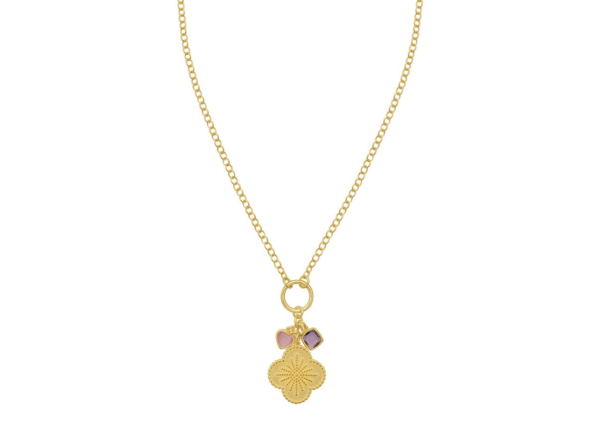 Warm and delicate, this Sterling Silver Gold Plated Flower Cubic Zirconia Charm Necklace brings a touch of natural beauty to any look. The charming flower pendant features a sparkling CZ center surrounded by softly polished petals, creating a graceful, feminine glow. Crafted in sterling silver with rich gold plating for lasting shine, it’s perfect for everyday wear, layering, or gifting. Simple, radiant, and timeless, this necklace adds a fresh floral touch to any jewelry collection.