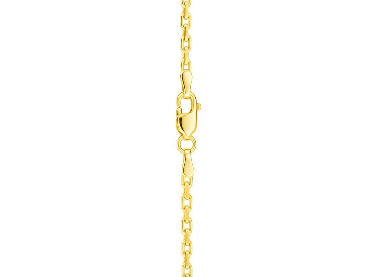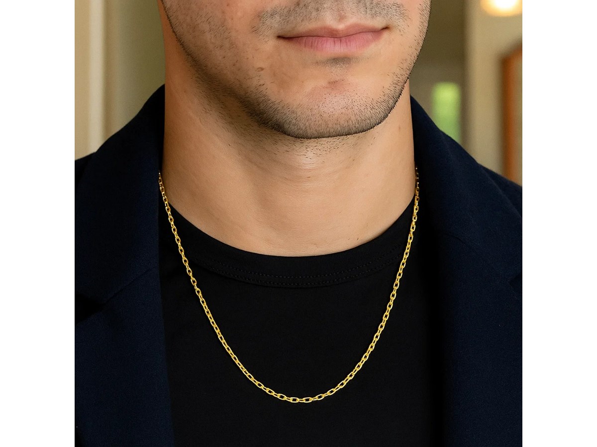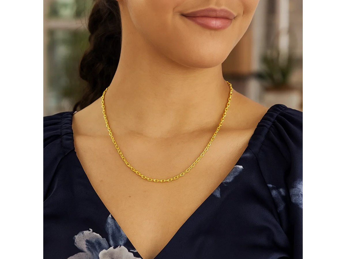 Crafted in sterling silver with a rich gold plating, this 2.80 mm French cable chain features intricately textured, interlocking links that offer impressive strength and a warm, radiant shine, making it a versatile piece perfect for wearing solo or enhancing with a favorite pendant.
