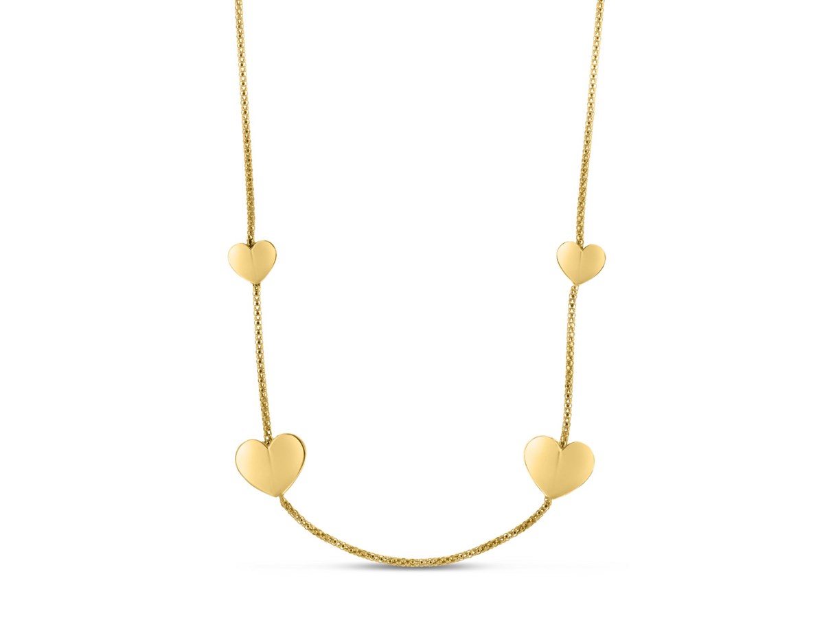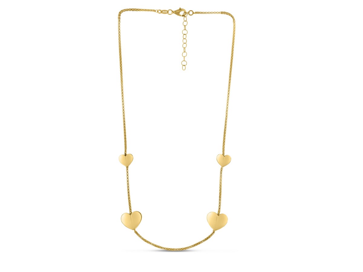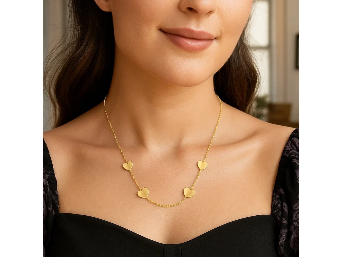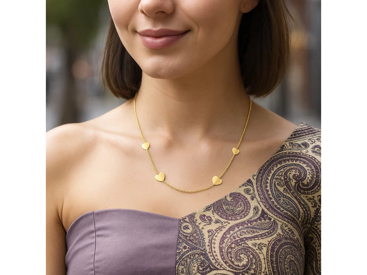Add a charming touch to any look with this Sterling Silver Gold Plated Hearts Station Necklace. Featuring delicate heart stations on a warm gold-plated chain, it brings subtle shine and sweet elegance. Perfect for layering or wearing solo for an effortlessly feminine style.