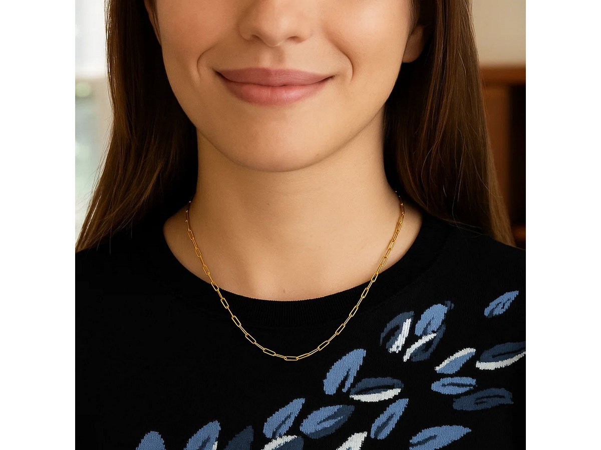 Brilliantly shiny sterling silver links come together to form this contemporary paperclip chain measuring 1.8 mm in width and closes with a lobster clasp. Available in lengths 16, 18 and 20 inches.