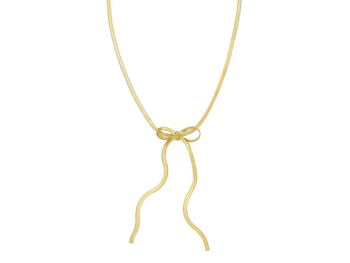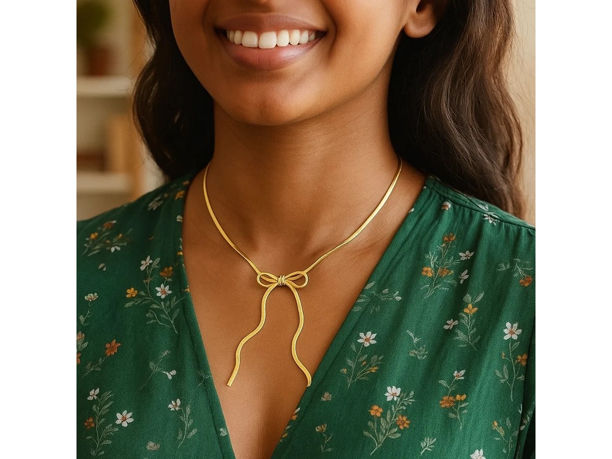 Add a touch of refined charm with this Sterling Silver Gold Plated Snake Bow Necklace. Featuring a smooth snake-style chain and a graceful bow detail, it shines with warm gold plating for a timeless yet modern look. Perfect for everyday wear or adding a hint of elegance to any outfit.