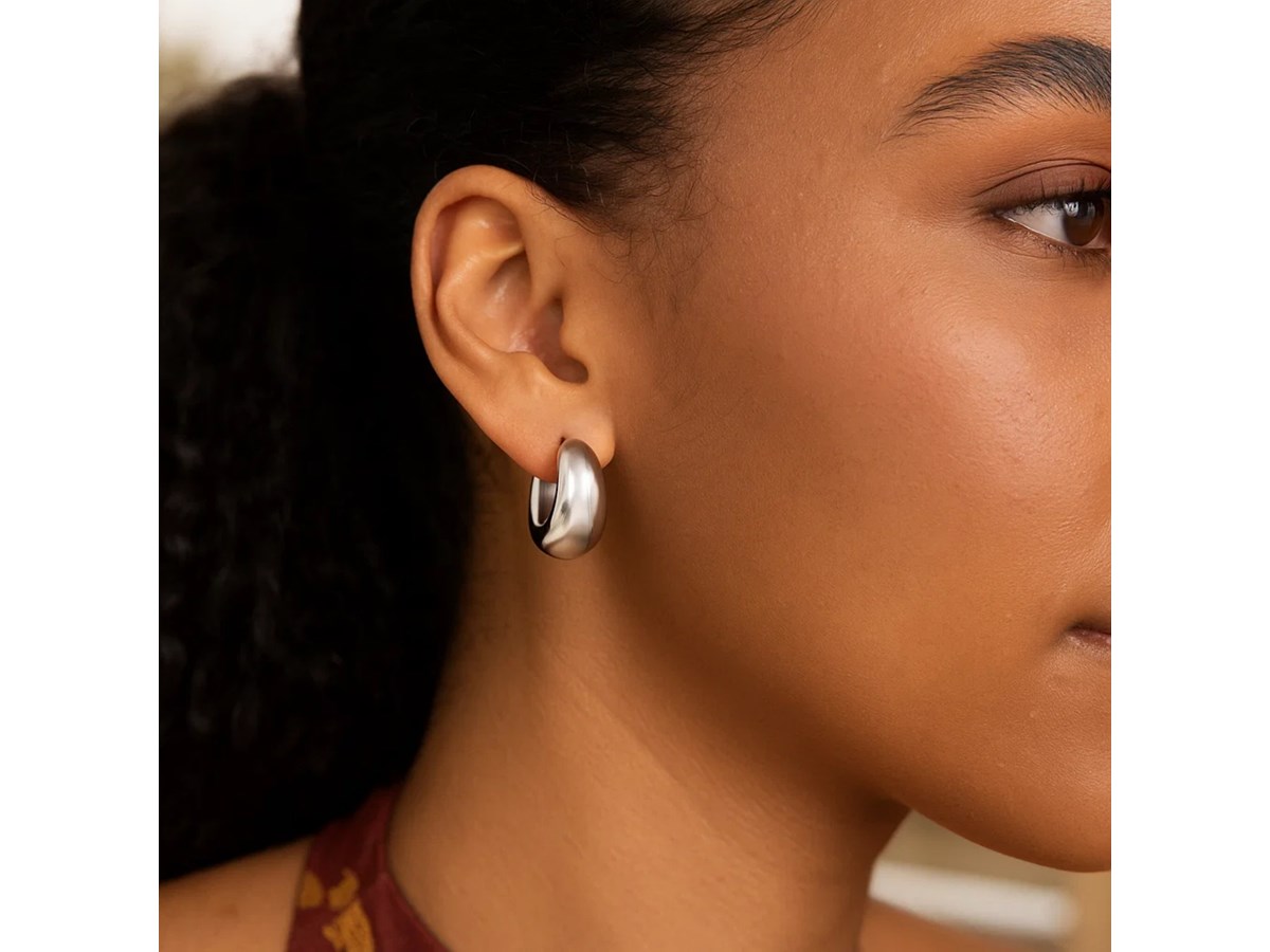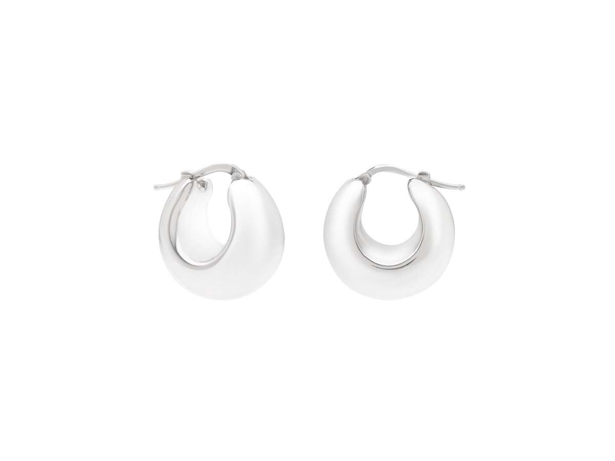Elegant sterling silver large graduated hoop earrings featuring a polished finish and gracefully tapered design. The graduated shape adds depth and dimension, creating a bold yet refined look perfect for everyday wear or sophisticated evening style.