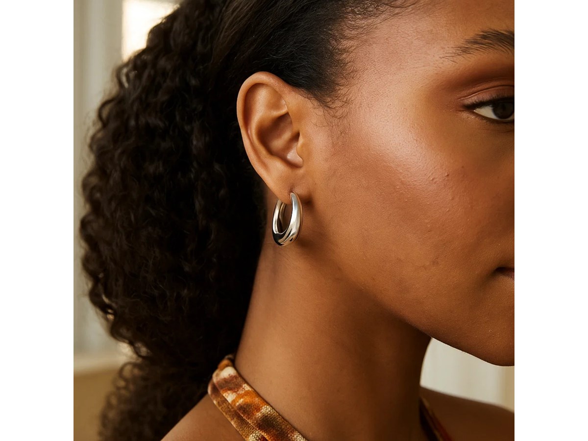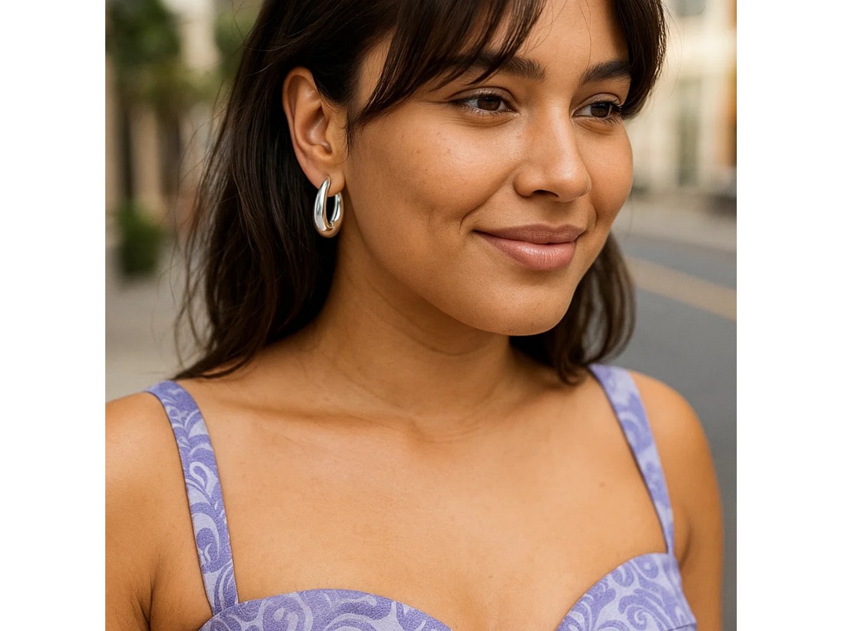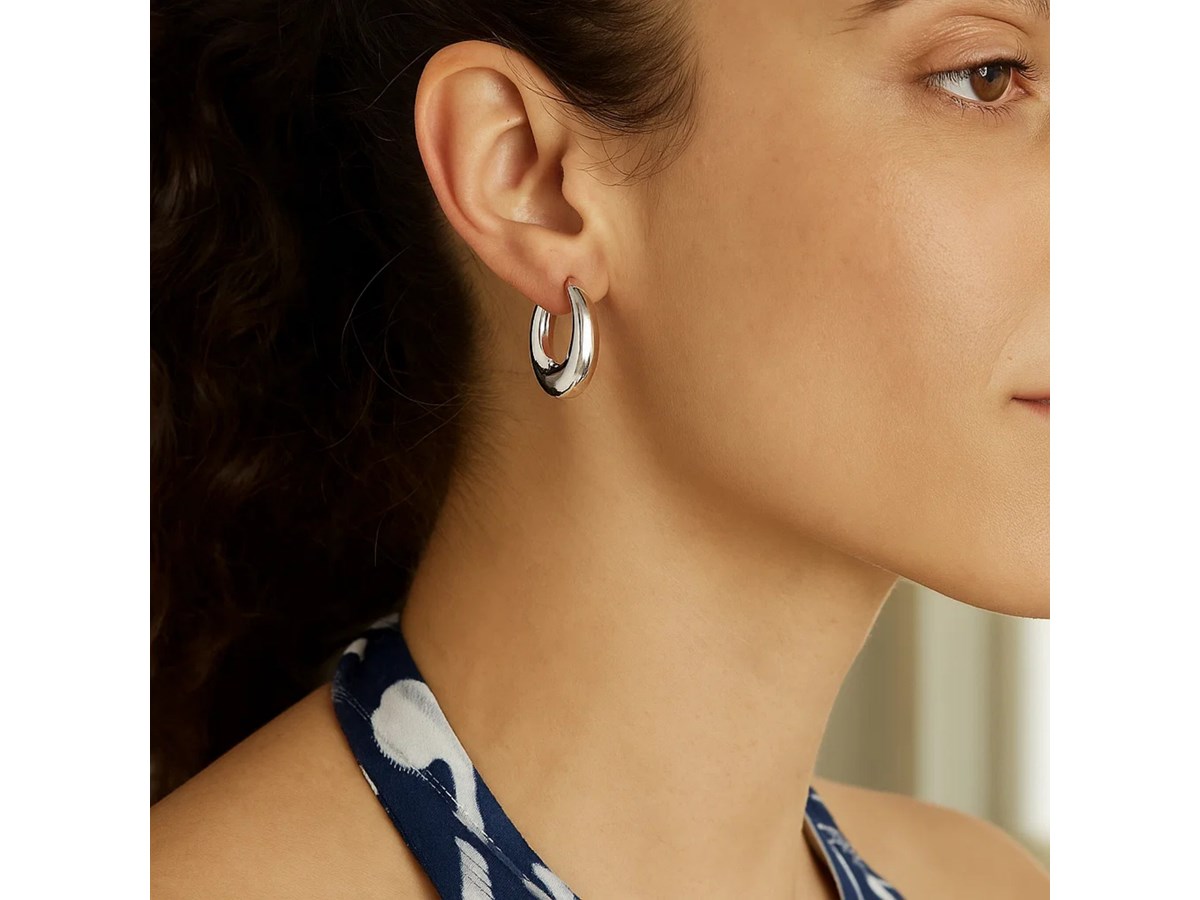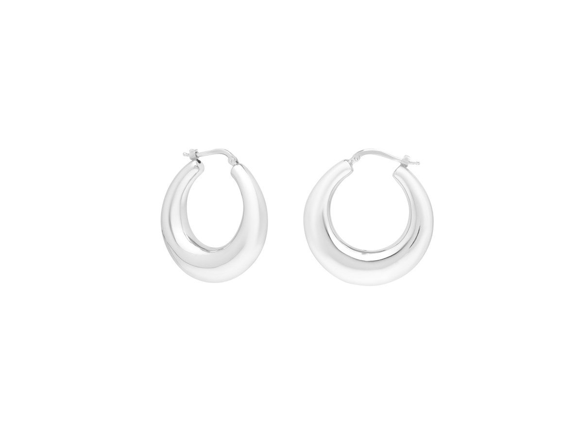 Elegant sterling silver medium graduated hoop earrings featuring a polished finish and smoothly tapered design. The graduated shape adds depth and dimension, offering a timeless balance of sophistication and versatility perfect for both everyday wear and special occasions.