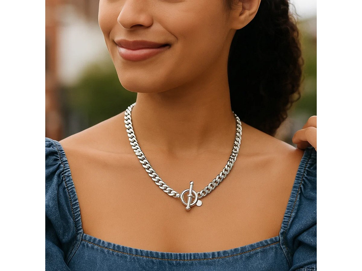 A bold toggle clasp adds shine and versatility to this classic sterling silver polished link necklace. Necklace is 18 inches long, 6mm wide, and closes with a toggle clasp.