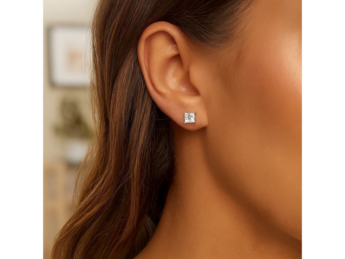 Elegant sterling silver princess CZ stud earrings (6.00 mm) featuring sparkling princess-cut cubic zirconia set in a polished sterling silver frame. Their timeless brilliance and refined design make them perfect for both everyday wear and special occasions.