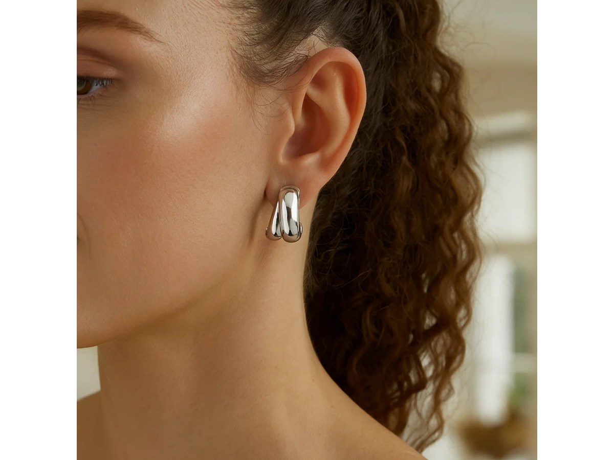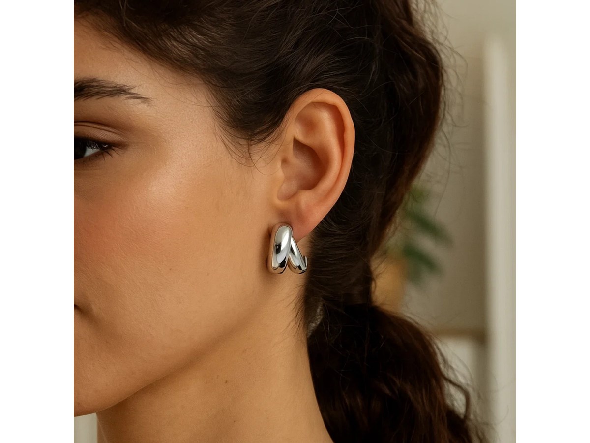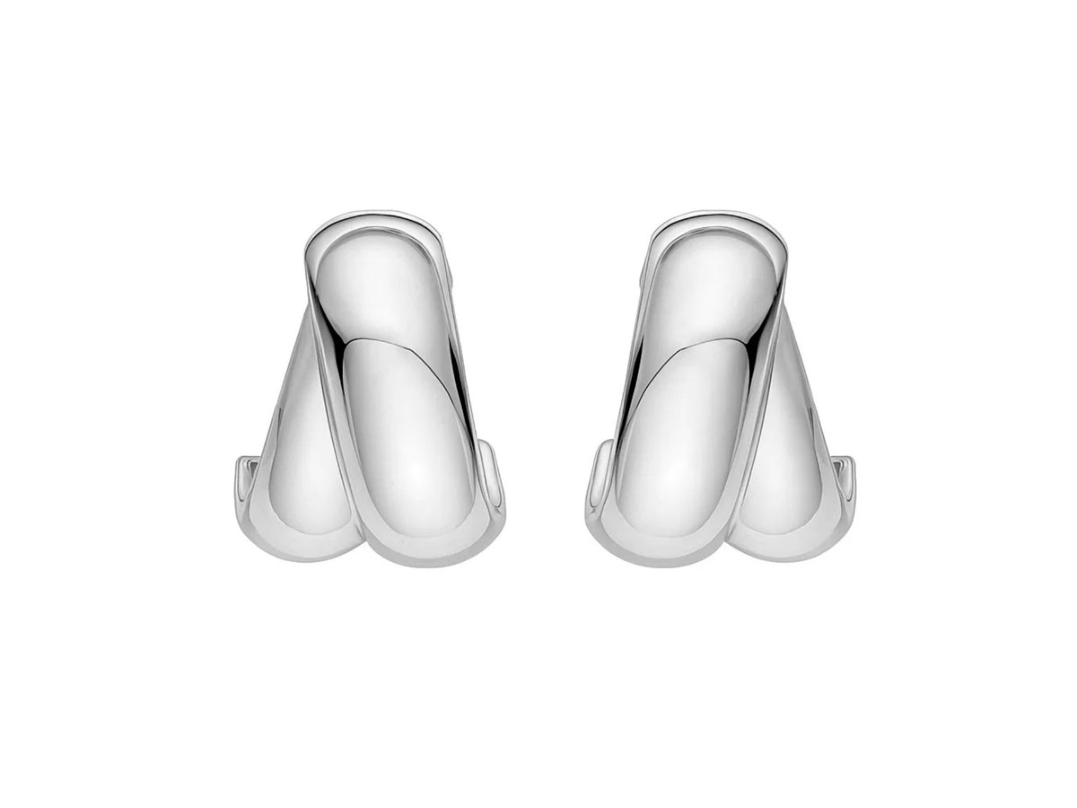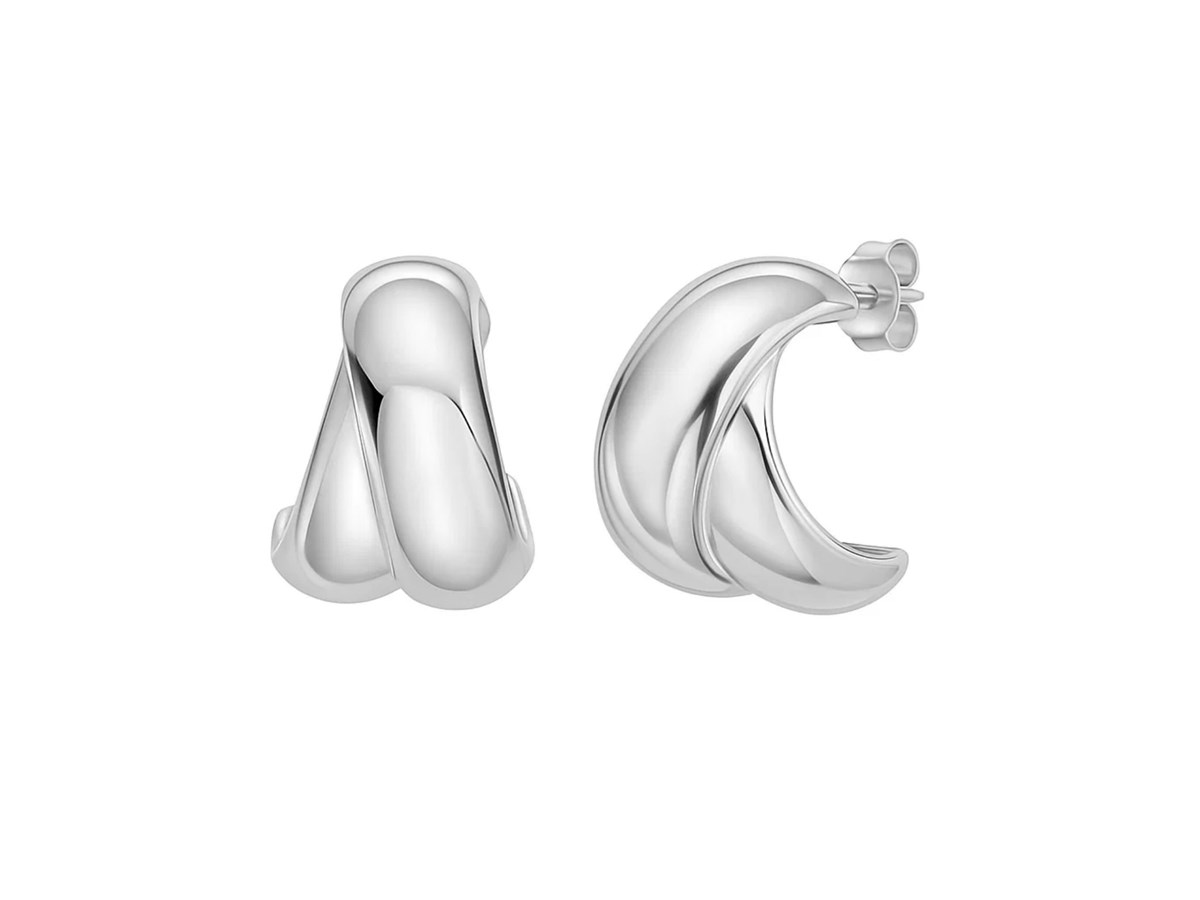 Elegant sterling silver puffed double row crossover C hoop earrings featuring a polished finish and bold sculpted design. The crossover rows create depth and dimension, while the puffed form adds a modern, sophisticated touch perfect for any occasion.