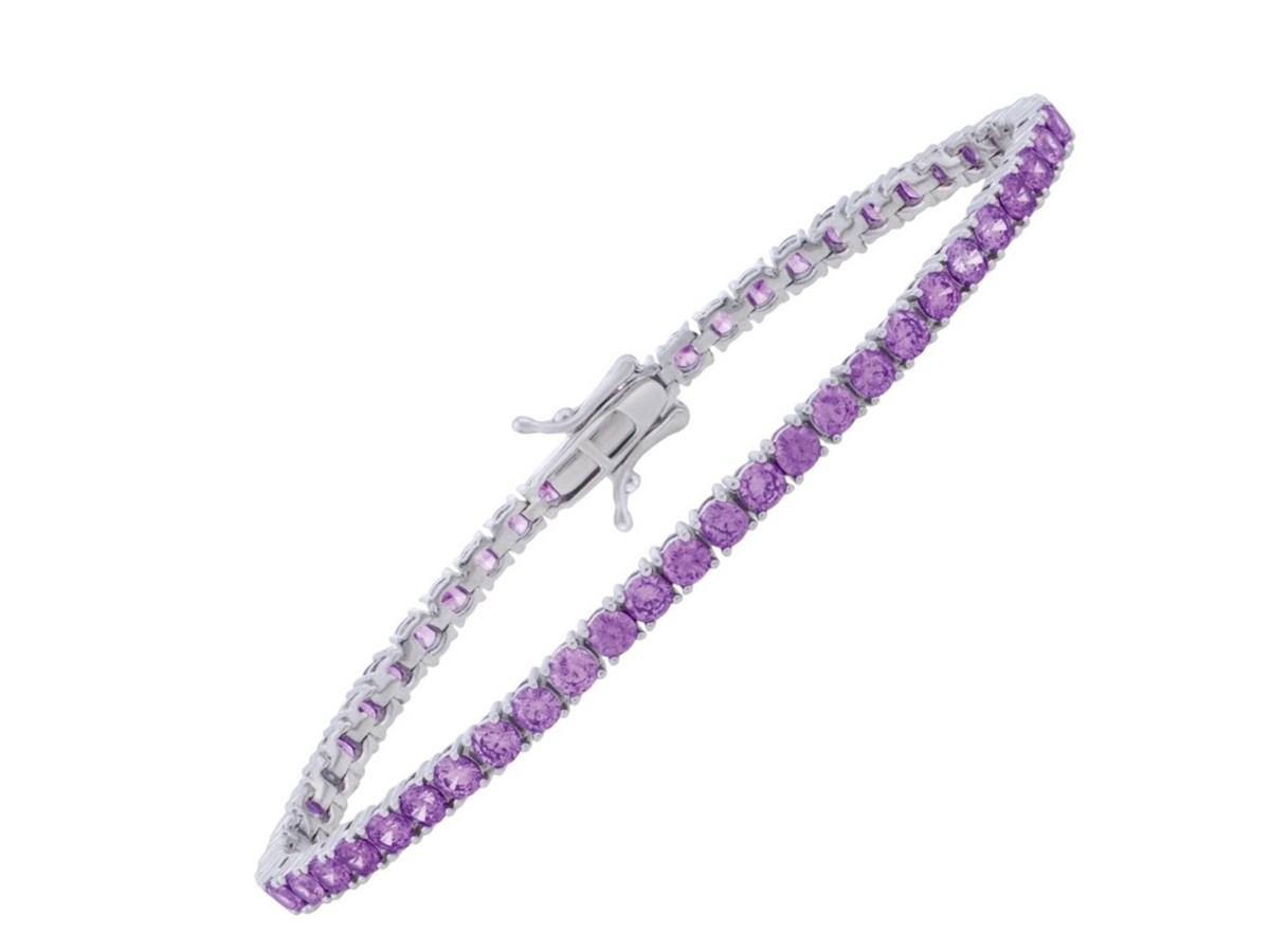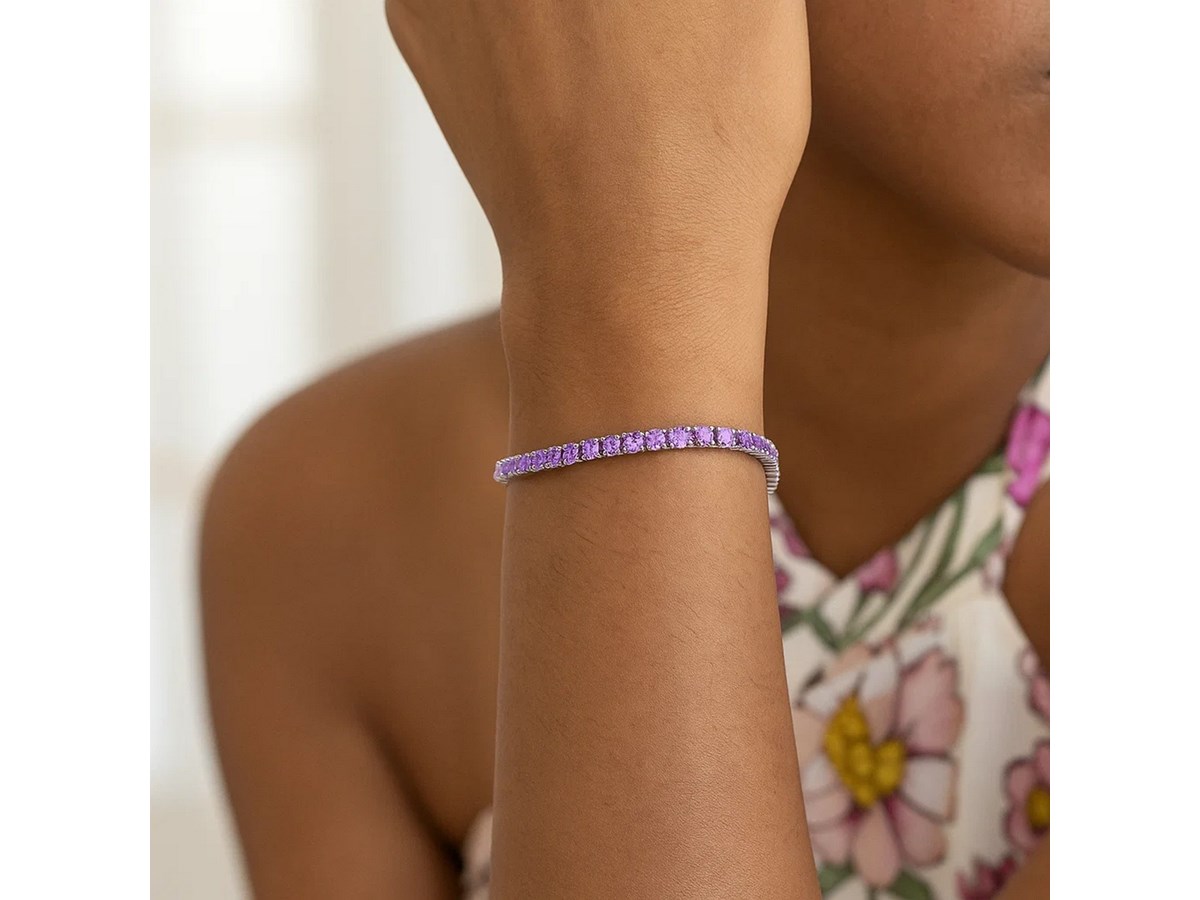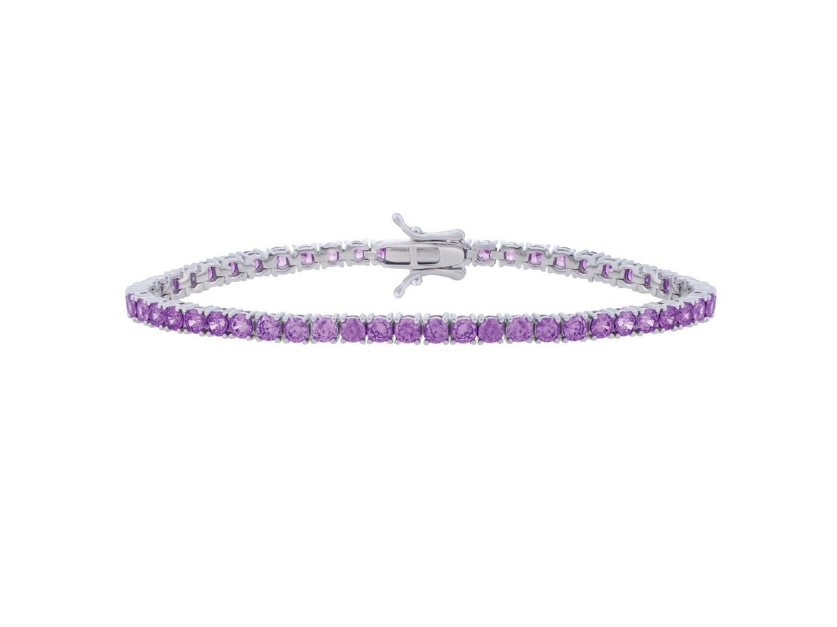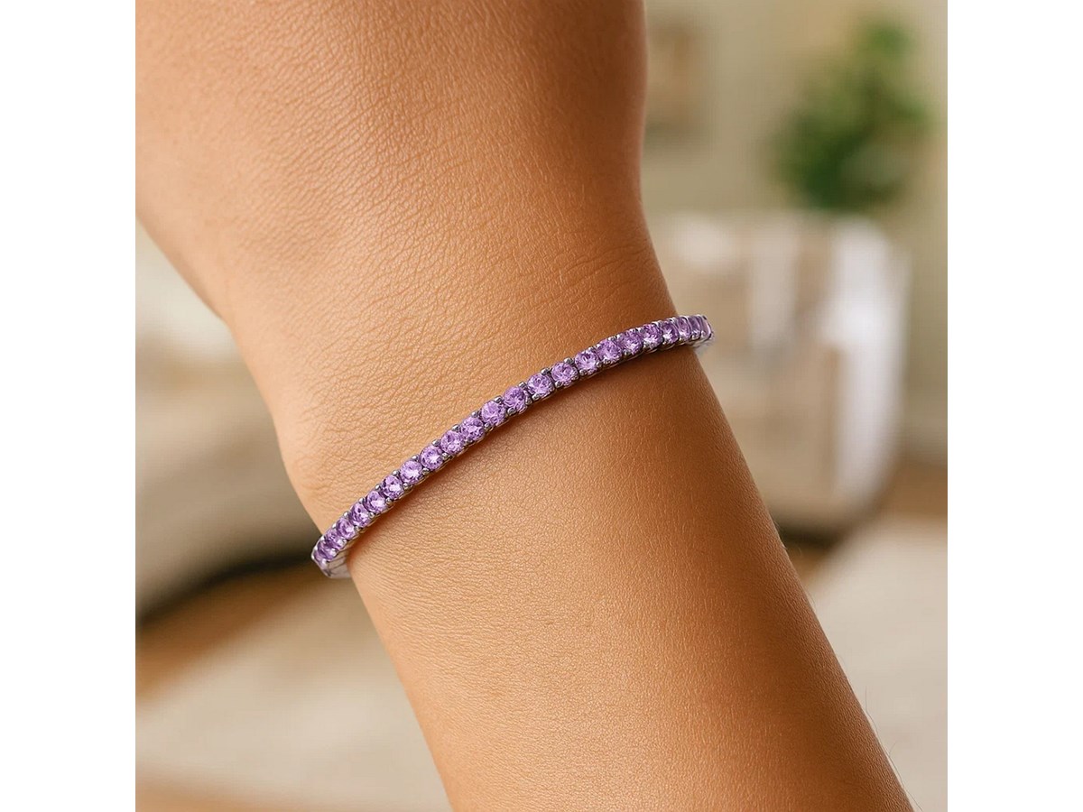 Elegant and eye catching, this Sterling Silver Purple CZ Tennis Bracelet (3.30 mm) adds vibrant color with timeless sparkle. Each round purple cubic zirconia is set in a sleek sterling silver frame, creating a continuous line of brilliance. Perfect for special occasions or adding a refined touch to everyday style, this bracelet offers a modern and colorful twist on a classic design.