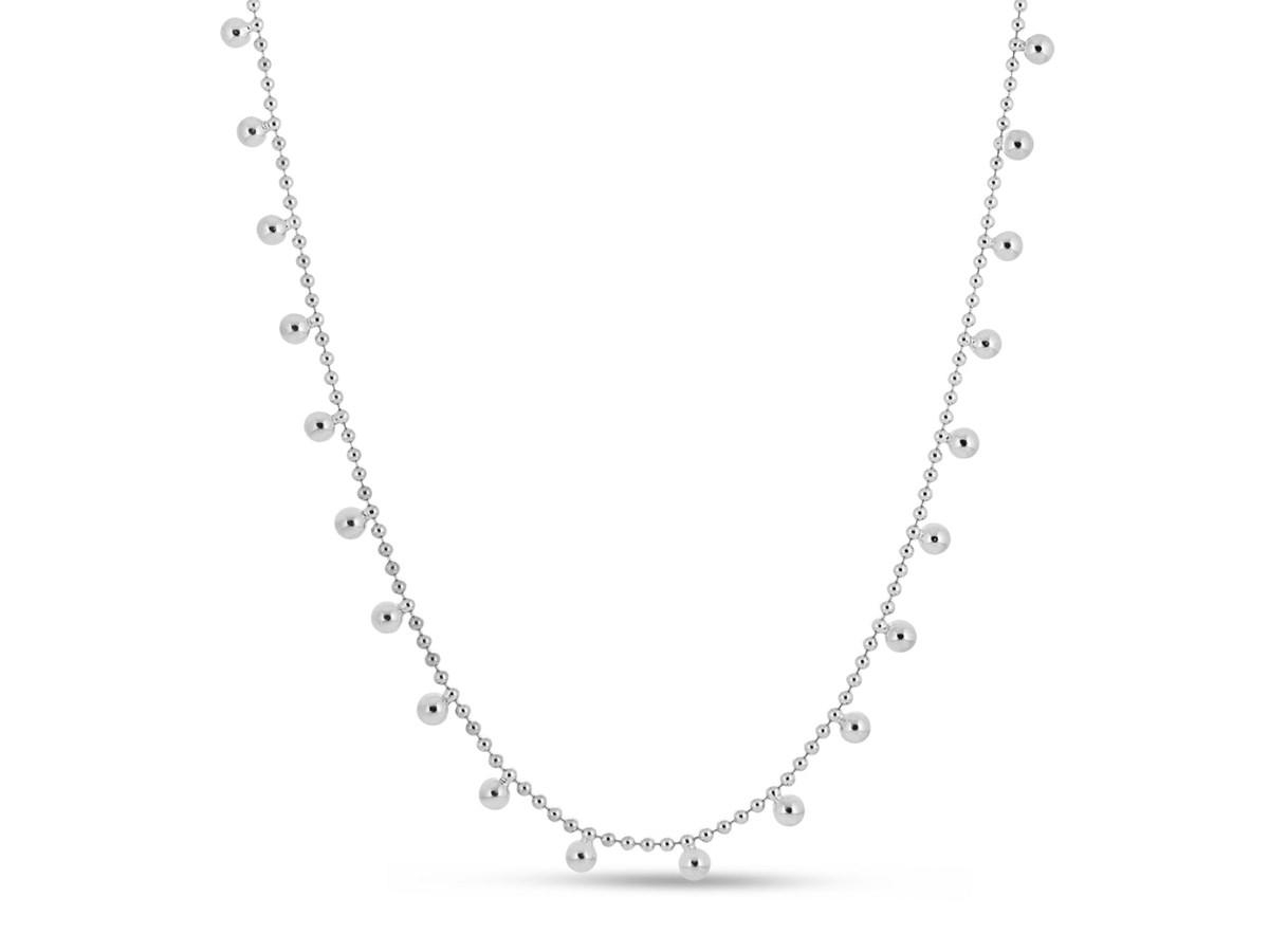 Sterling Silver Rhodium Plated Bead Necklace