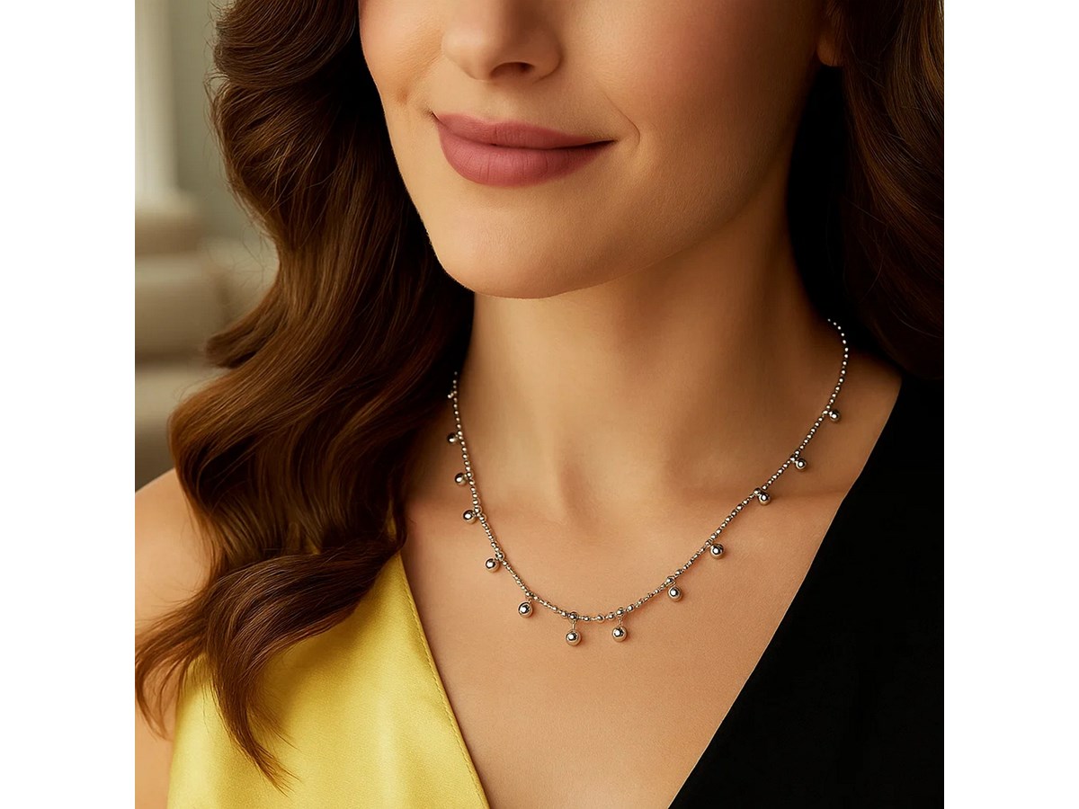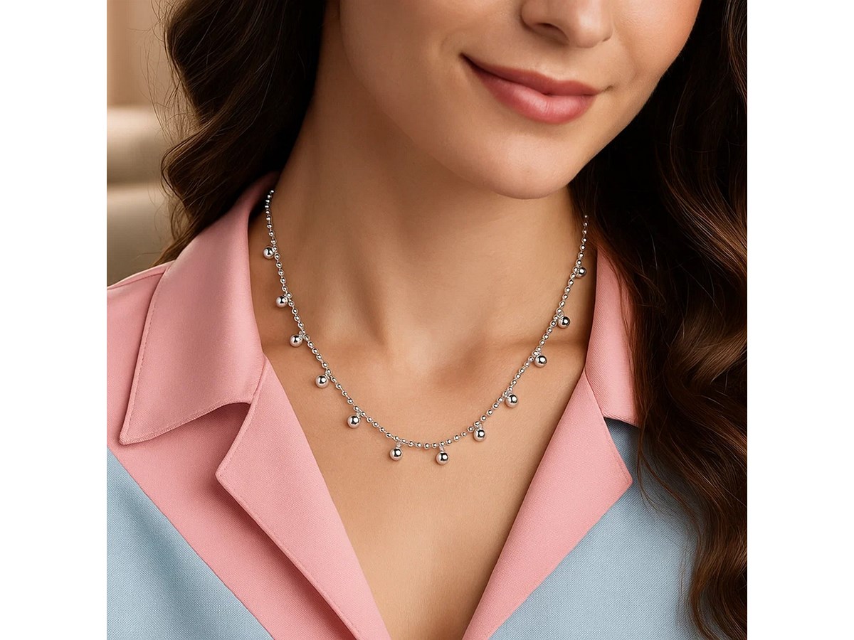 Elevate your everyday style with this Sterling Silver Rhodium Plated Bead Necklace. Featuring polished silver beads and a sleek rhodium finish, it offers timeless shine and simple elegance. Perfect for layering or wearing solo for a classic, refined look.