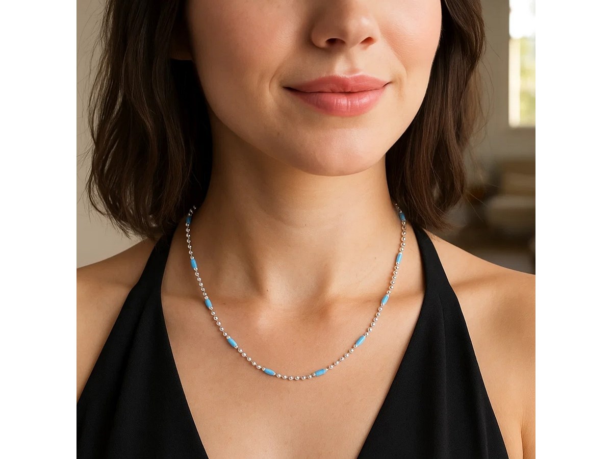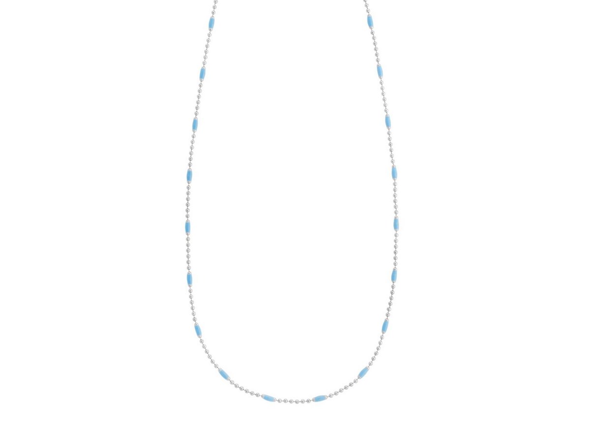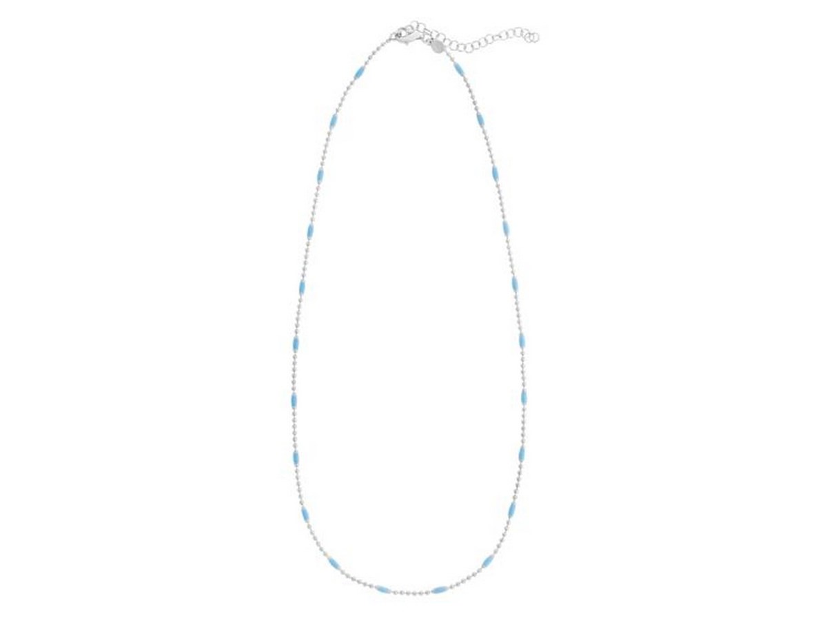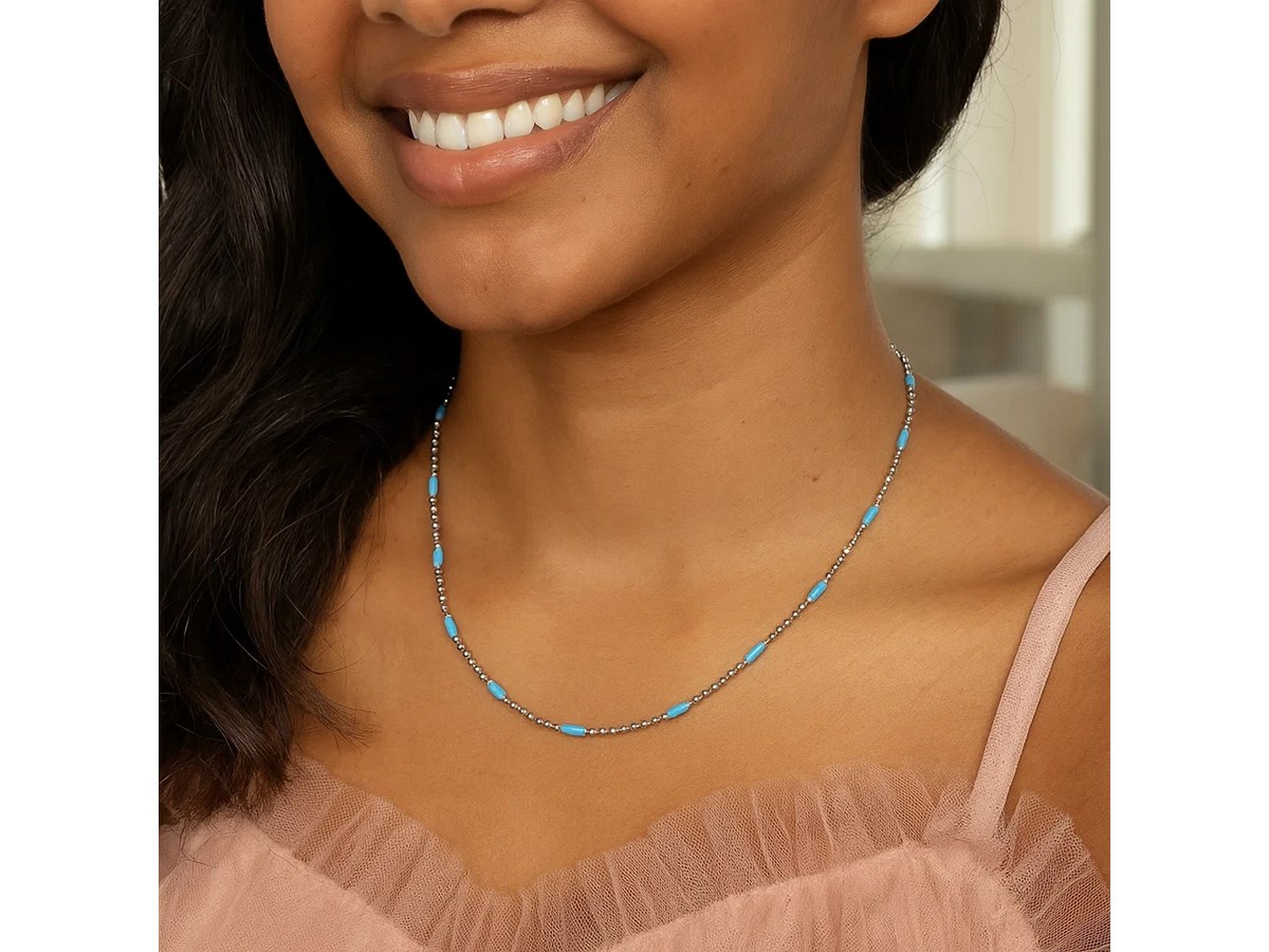 Refresh your style with this Sterling Silver Rhodium Plated Blue Enamel Beaded Necklace. Featuring glossy blue enamel beads on a sleek rhodium-plated sterling silver chain, it delivers a bright, modern pop of color. Lightweight, stylish, and perfect for everyday wear or effortless layering.