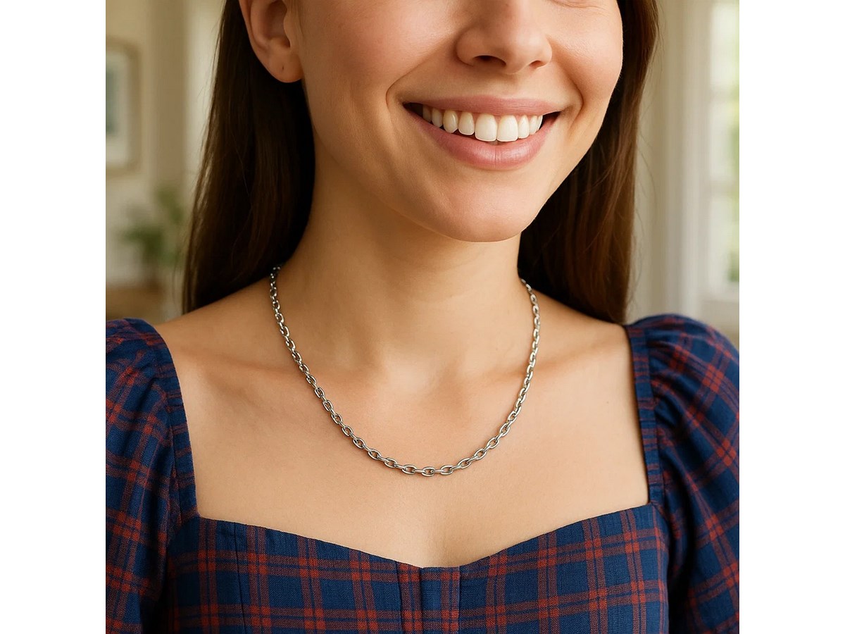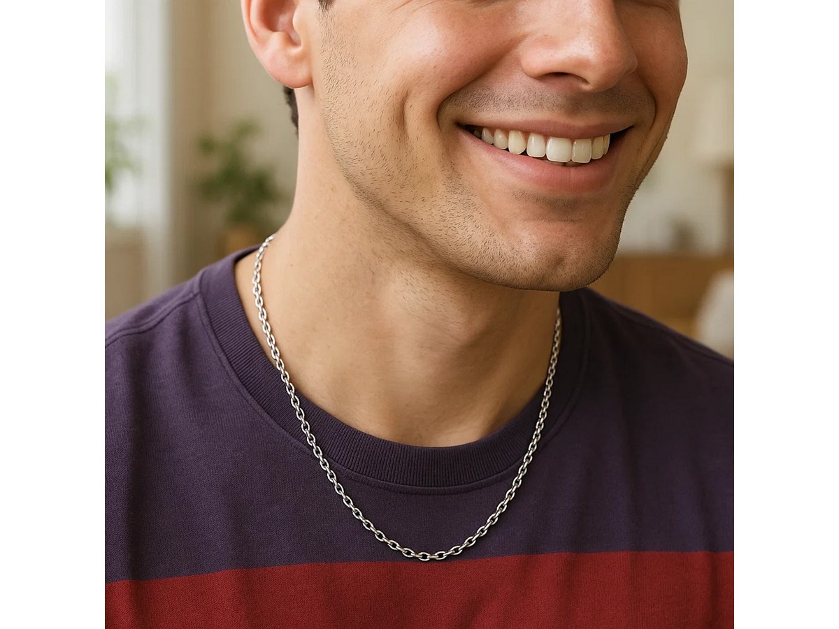 Rhodium plated cable chain crafted in sterling silver measuring 2.20 millimeters in width. Available in lengths 16 inches, 18 inches, 20 inches and 24 inches.