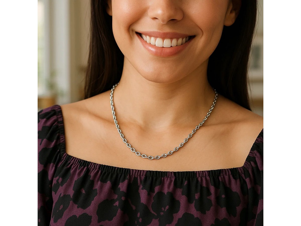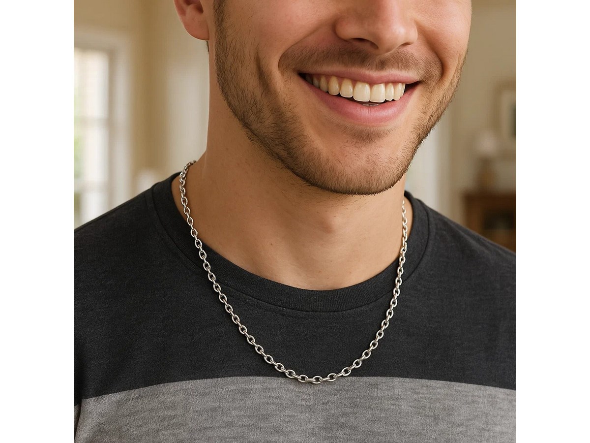 Rhodium plated cable chain crafted in sterling silver measuring 2.75 millimeters in width. Available in lengths 18 inches, 20 inches, 22 inches, 24 inches and 30 inches.