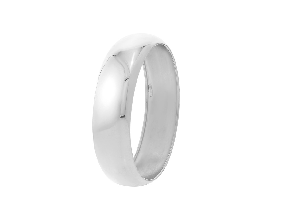 Sterling Silver Rhodium Plated Domed Classic Bangle (18.50 mm)