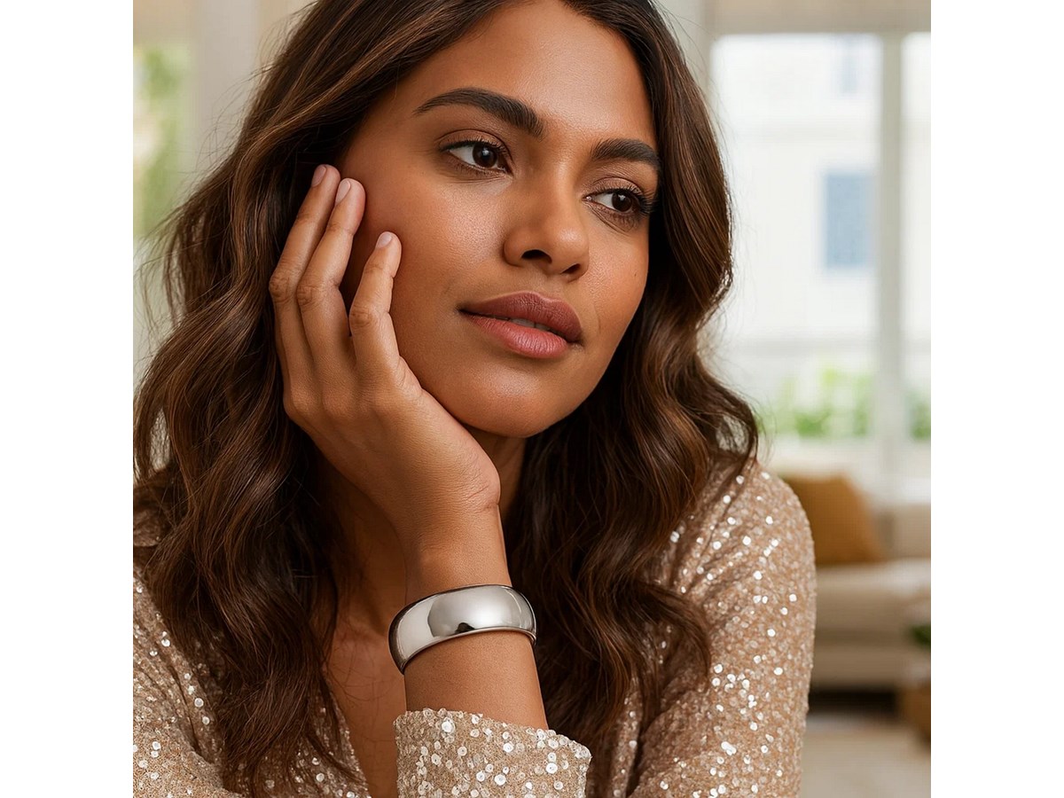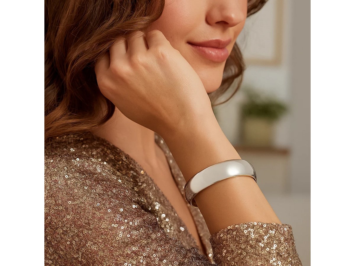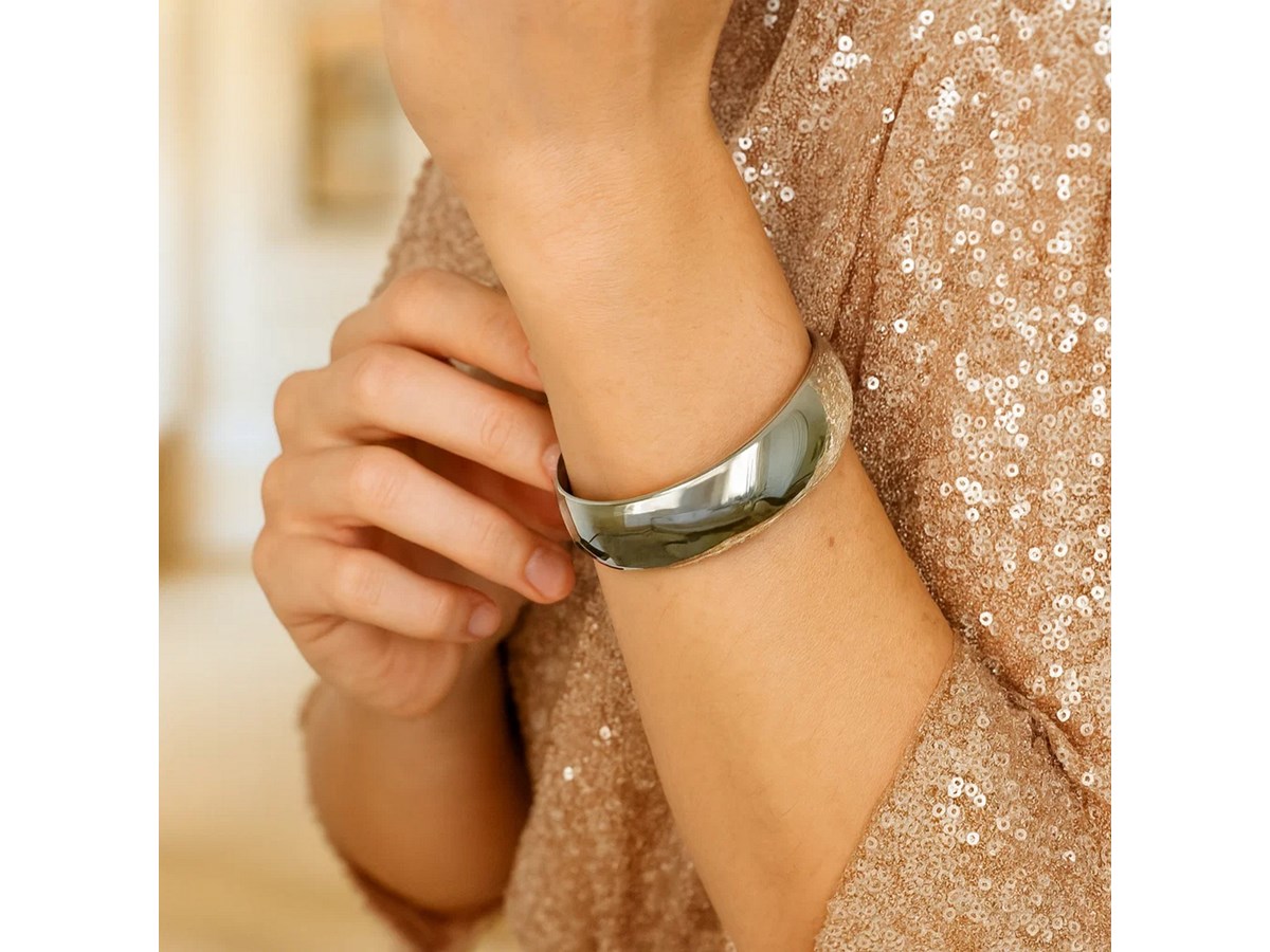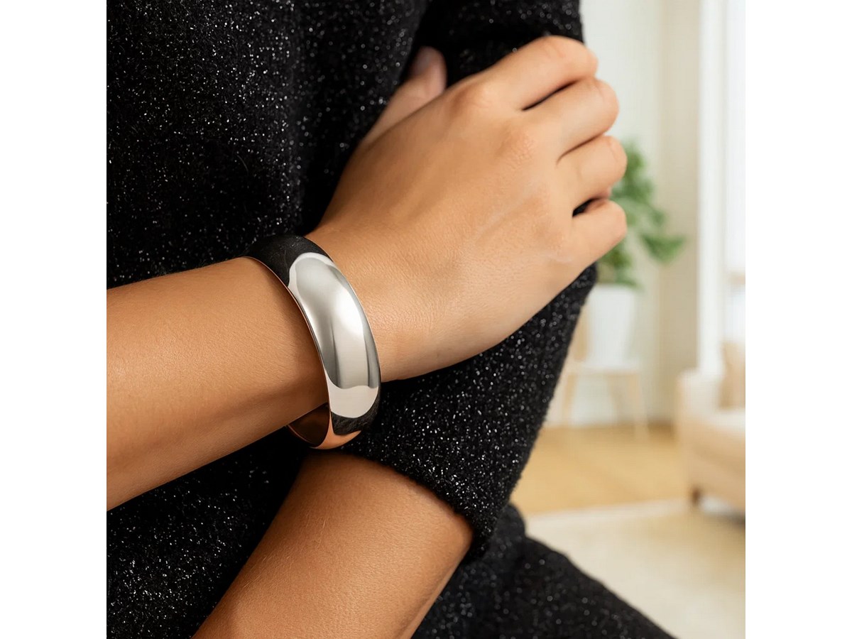 Sterling Silver Rhodium-Plated Domed Classic Bangle (18.50 mm) featuring a smooth, rounded dome profile crafted in sterling silver with a bright rhodium finish for enhanced shine and durability. The wide 18.50 mm design offers a timeless, polished look that stands out on its own or pairs beautifully with other pieces.