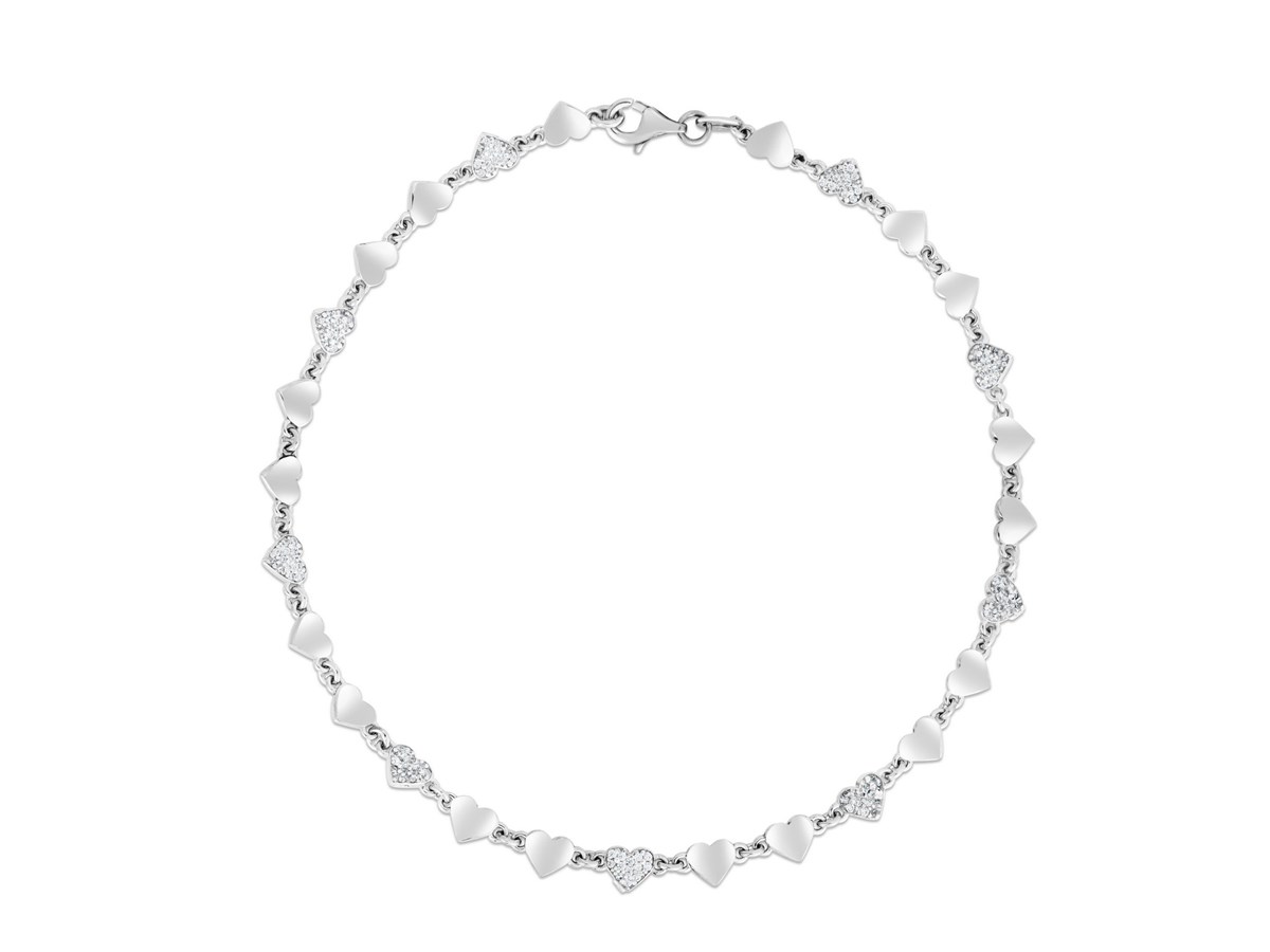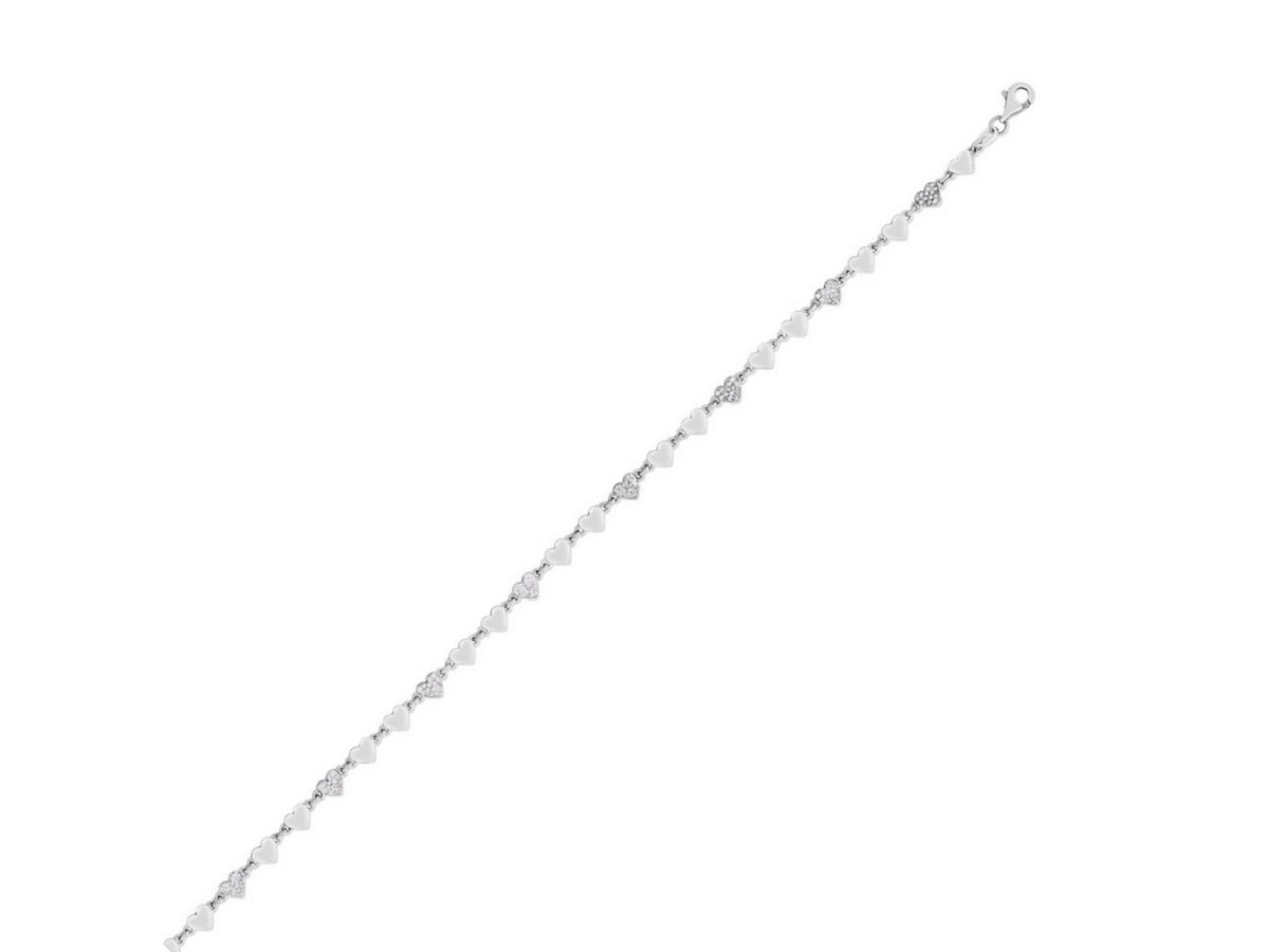 Sterling Silver Rhodium Plated Heart Anklet