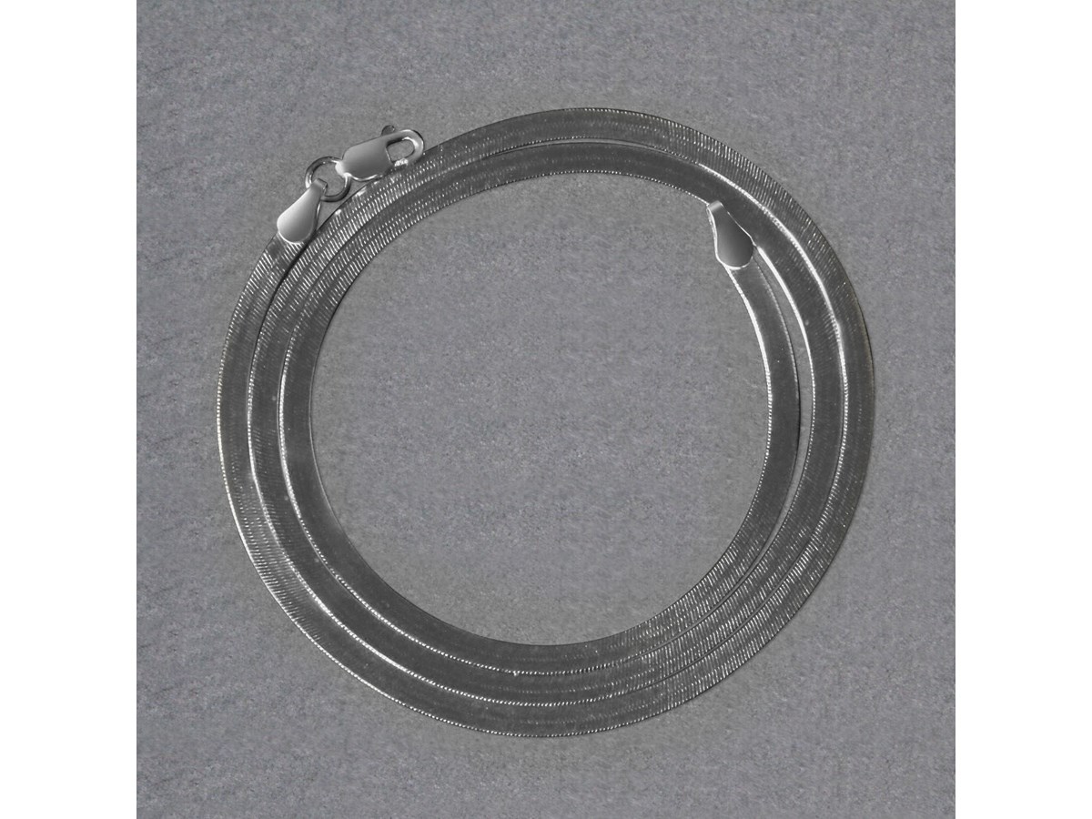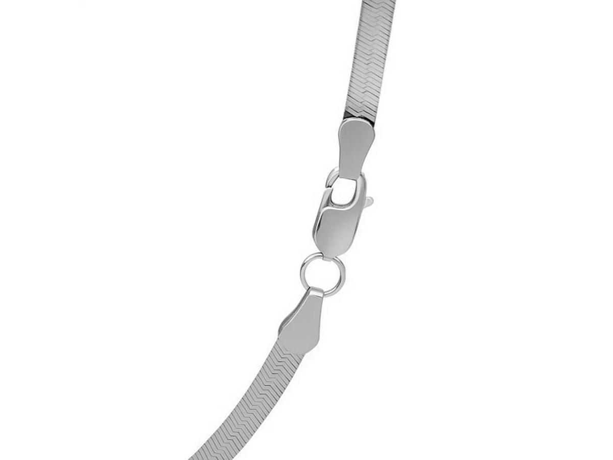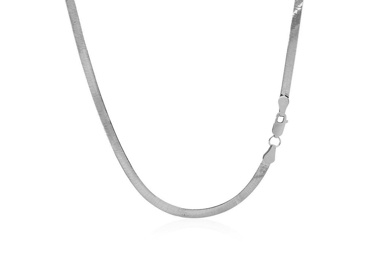 Rhodium plated herringbone chain crafted in sterling silver measuring 3.3 millimeters in width. Available in lengths 16 inches, 18 inches and 20 inches.