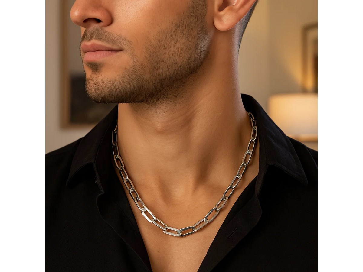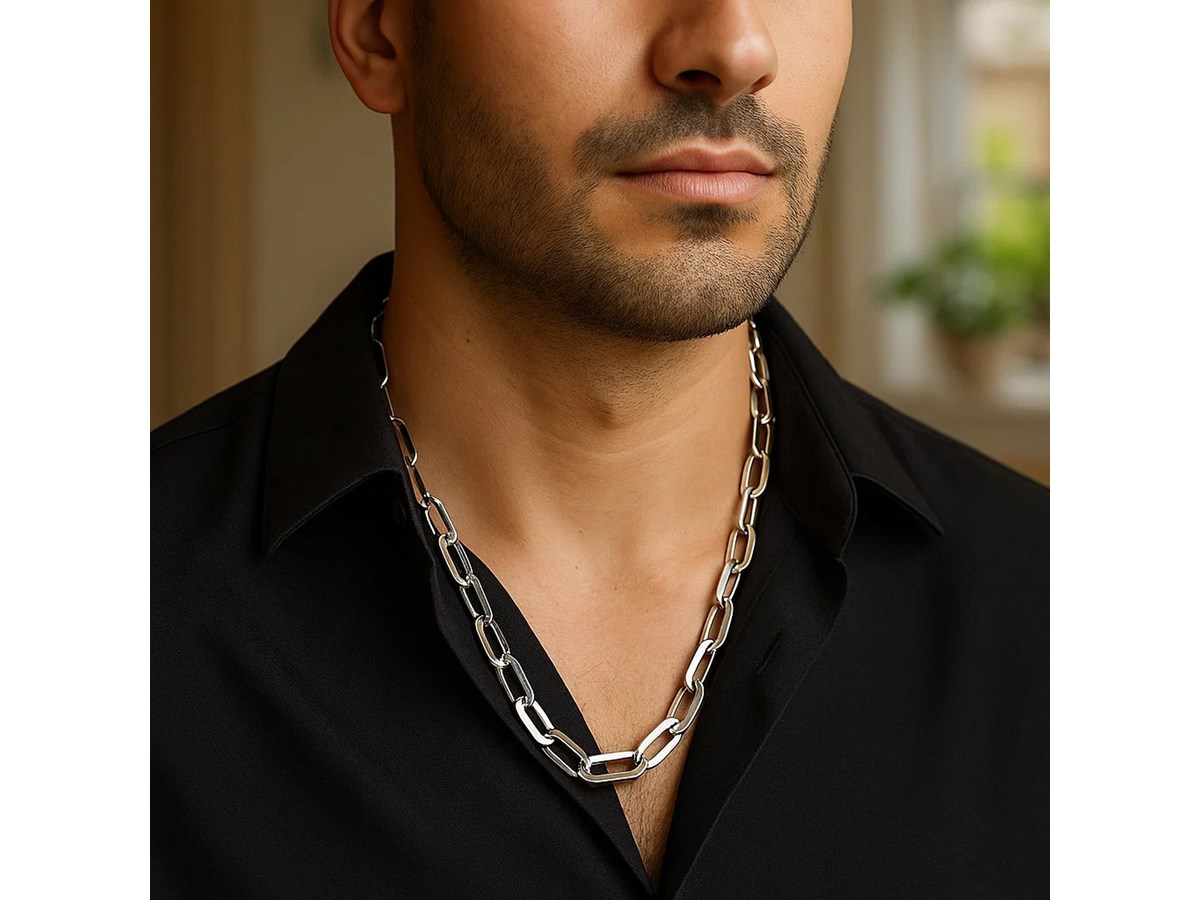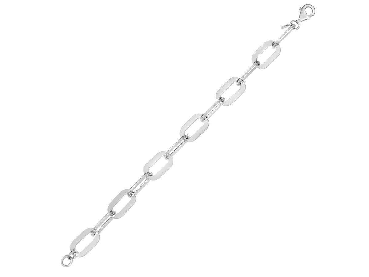 Crafted in sterling silver with a sleek rhodium finish, this 10.30 mm Italian link paperclip chain features oversized, elongated links that create a bold modern silhouette with a bright polished shine, making it an eye-catching statement piece perfect for elevating any look on its own or with a standout pendant.