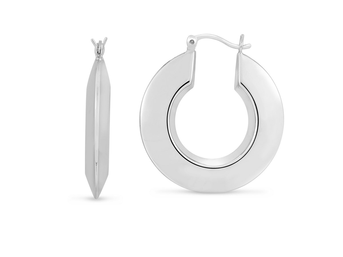 Sterling Silver Rhodium Plated Large Puffed Hoop Earrings