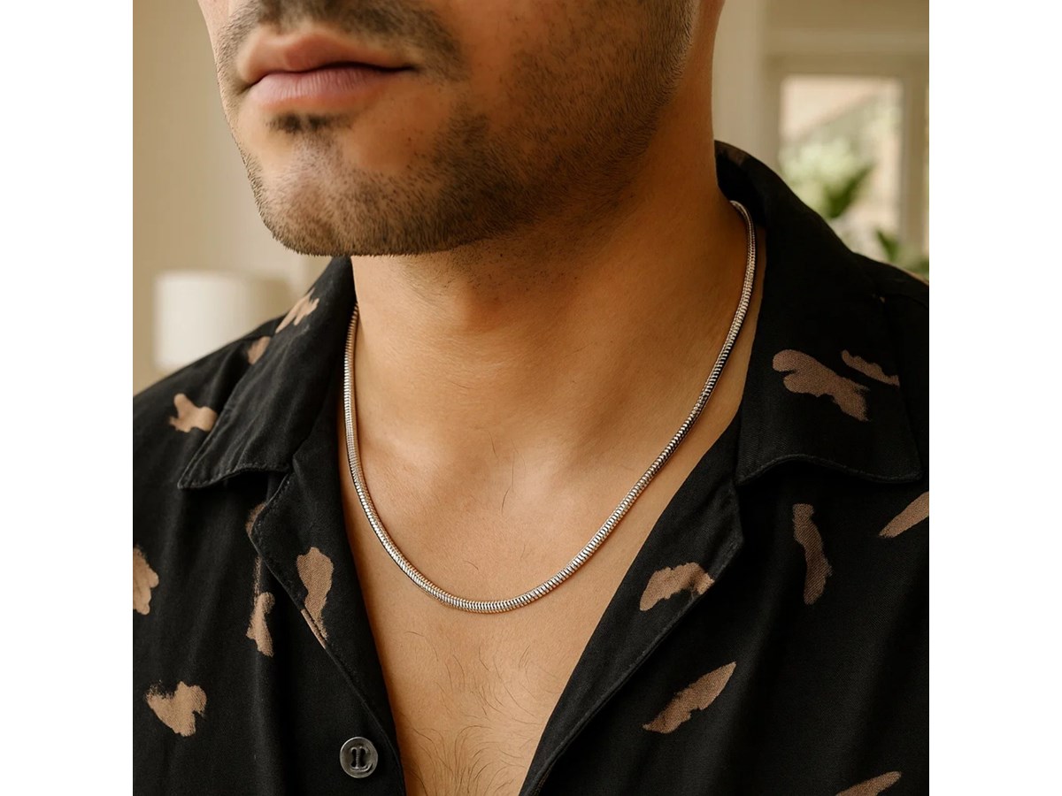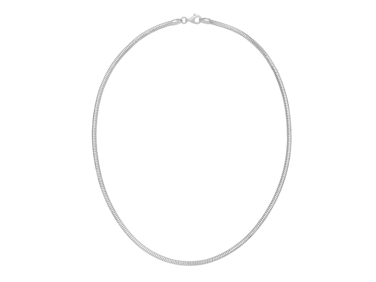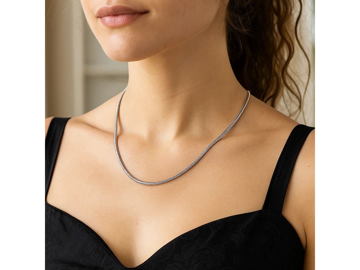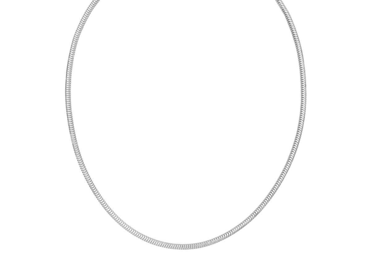 Crafted in sterling silver with a polished rhodium finish, this 3.00 mm octagonal snake chain features sleek, multidimensional links that create a smooth, flexible drape and a striking reflective shine, making it an elegant, modern piece perfect for everyday wear or pairing with your favorite pendant.