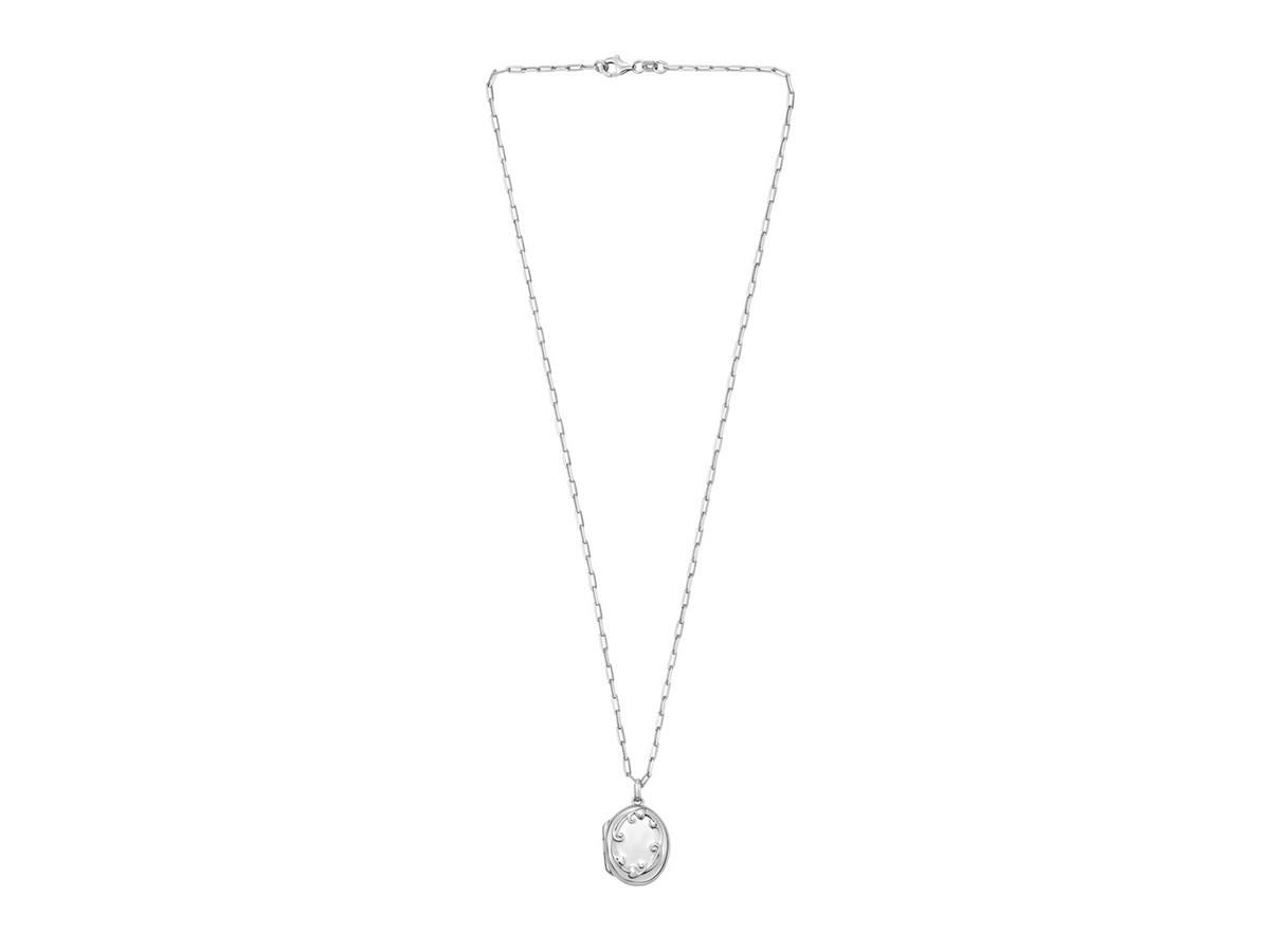 Sterling Silver Rhodium Plated Oval Vine Locket Necklace