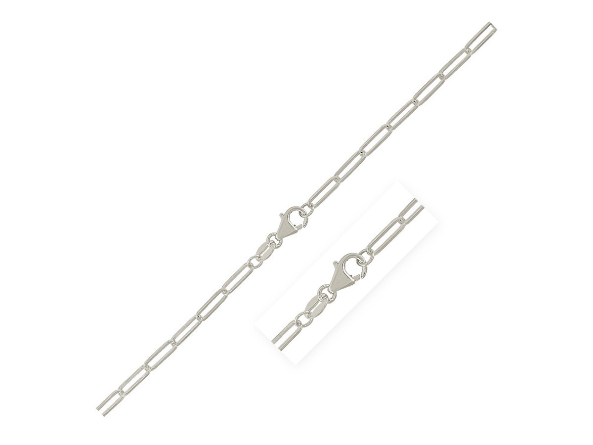 Sterling Silver Rhodium-Plated Paperclip Anklet featuring elongated paperclip-style links crafted in sterling silver with a bright rhodium finish. Its modern, minimalist design adds a sleek touch perfect for everyday wear or layering with other anklets.