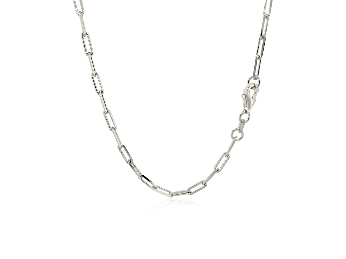 Brilliantly shiny sterling silver links come together to form this contemporary paperclip chain measuring 2.5 mm in width and closes with a lobster clasp. Available in lengths 16, 18, 20 and 24 inches.
