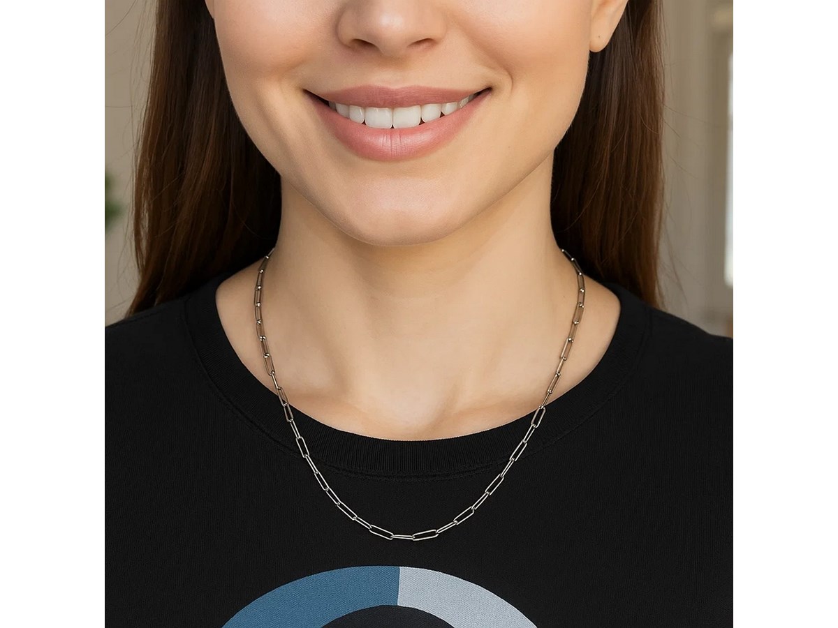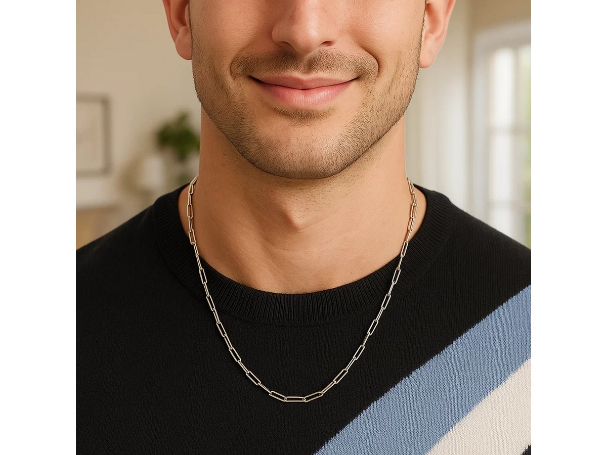 Brilliantly shiny sterling silver links come together to form this contemporary paperclip chain measuring 3.0 mm in width and closes with a lobster clasp. Available in lengths 18, 20, 24 and 30 inches.