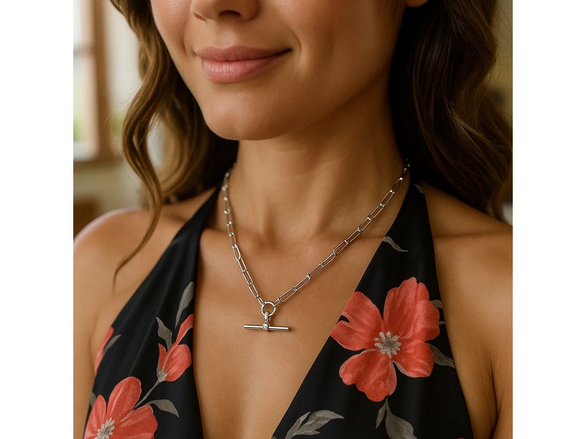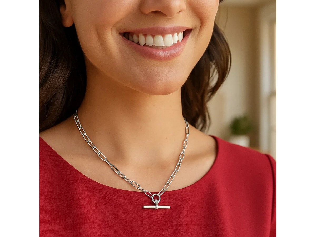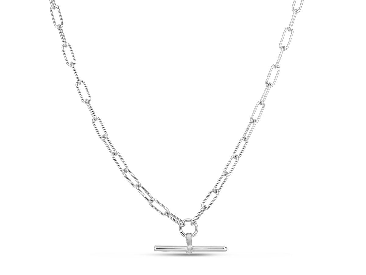 Elevate your everyday style with this Sterling Silver Rhodium Plated Paperclip Necklace. Featuring sleek, modern paperclip links and a radiant rhodium finish, it offers effortless shine and versatility. Perfect for layering or wearing solo for a chic, contemporary look.