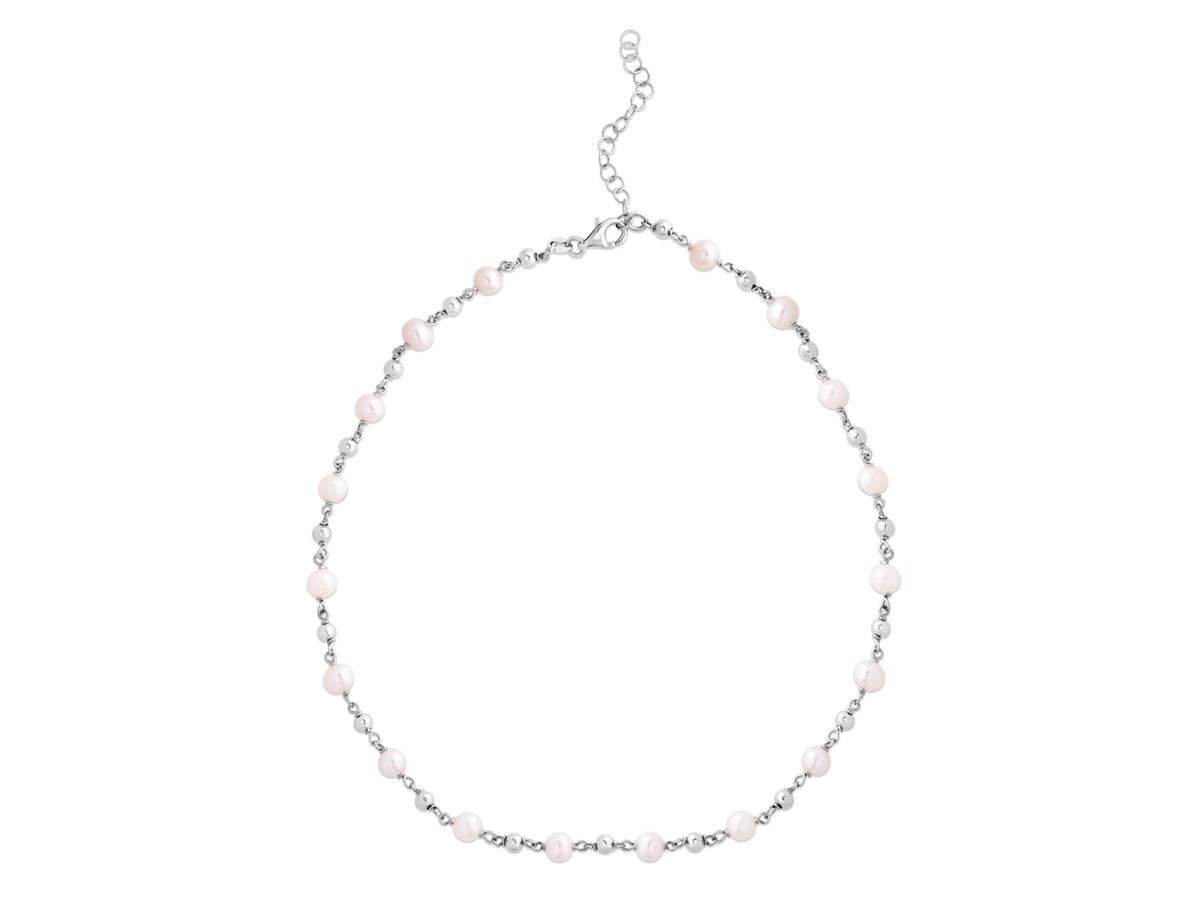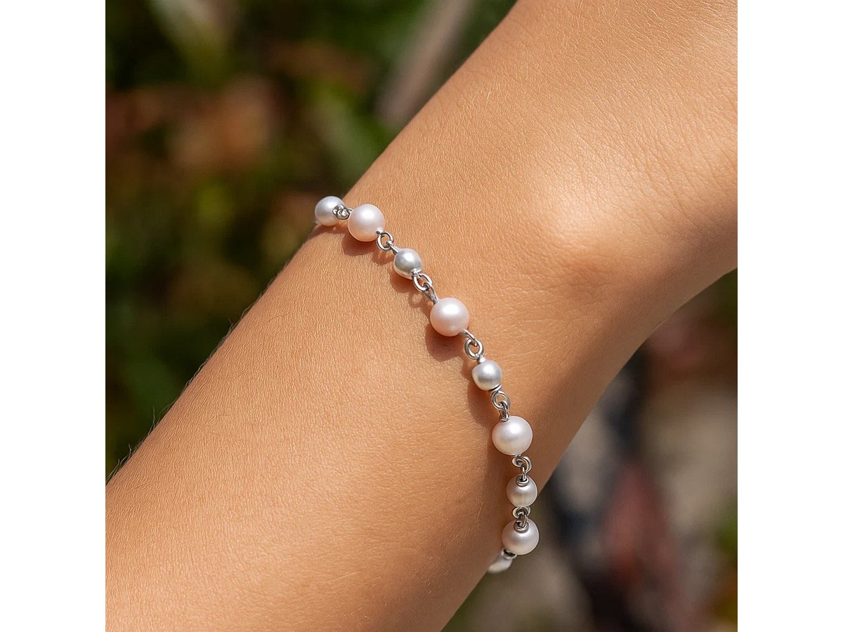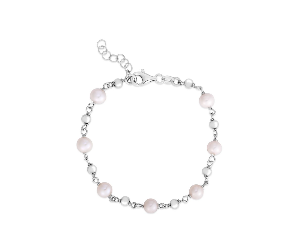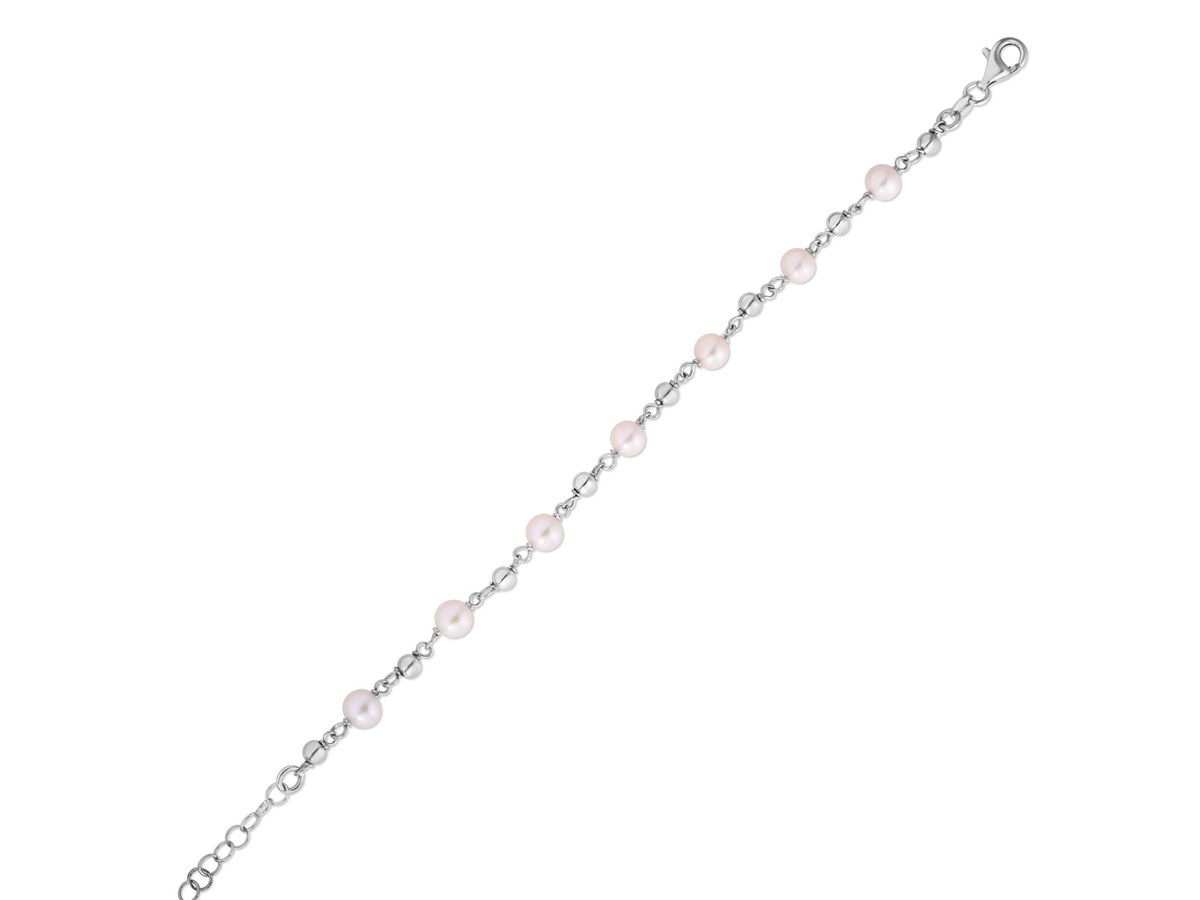 Sterling Silver Rhodium Plated Pearl Bead Bracelet