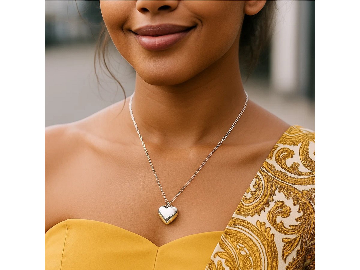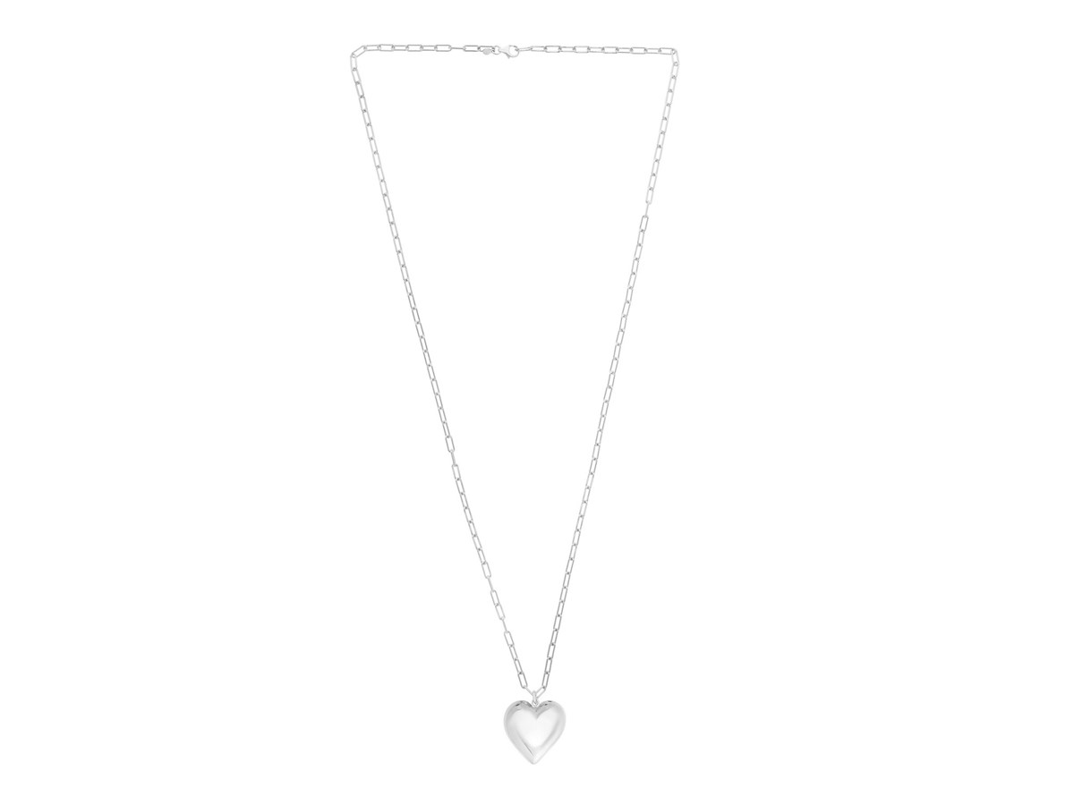 Crafted in sterling silver and finished with radiant rhodium plating, this puffed heart pendant offers a sleek, timeless shine. Its softly rounded silhouette adds a touch of romance and elegance, making it perfect for everyday wear or heartfelt gifting. Simple, classic, and effortlessly charming.