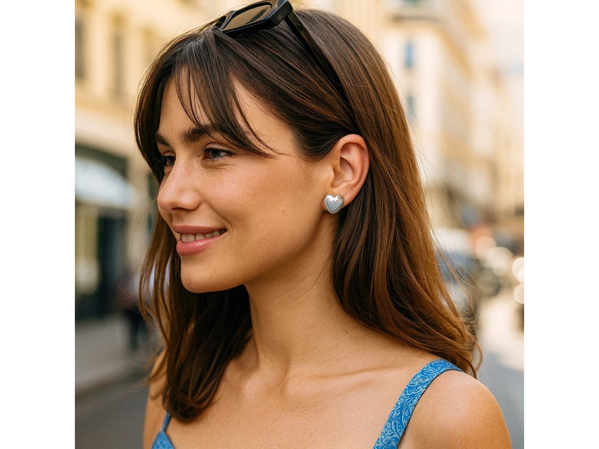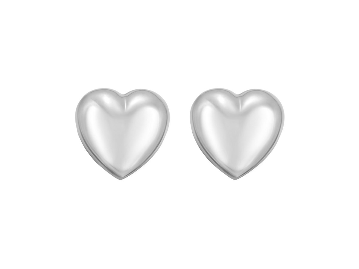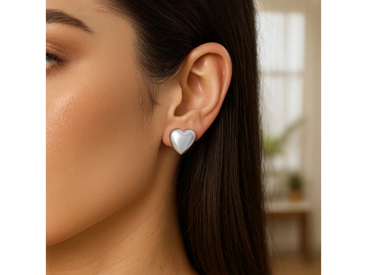 Elegant sterling silver rhodium plated puffed large heart stud earrings featuring a smooth, polished finish that radiates brilliance. The bold puffed heart design adds dimension and shine, creating a timeless statement of love and sophistication.