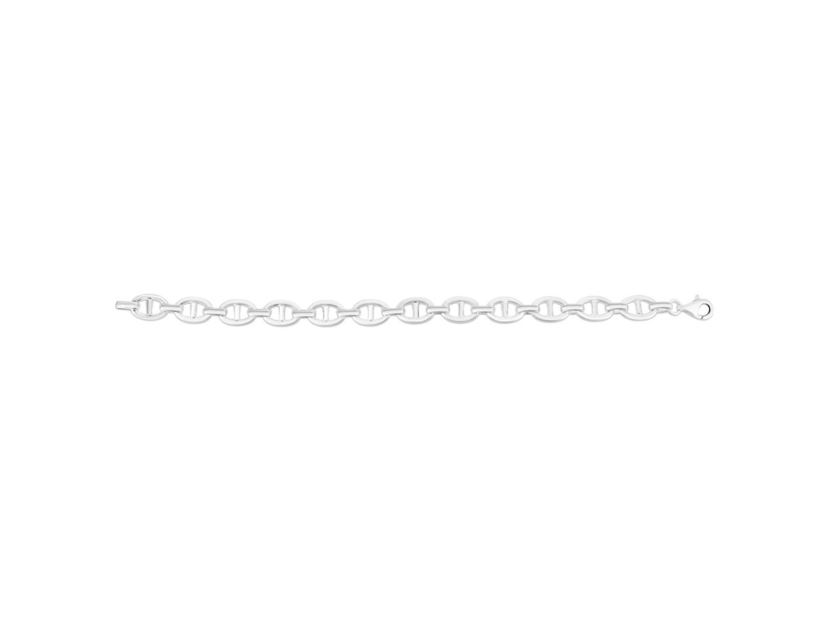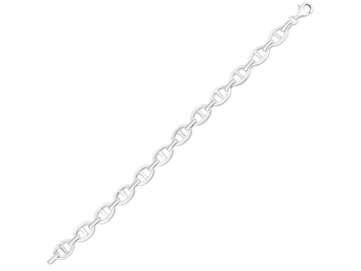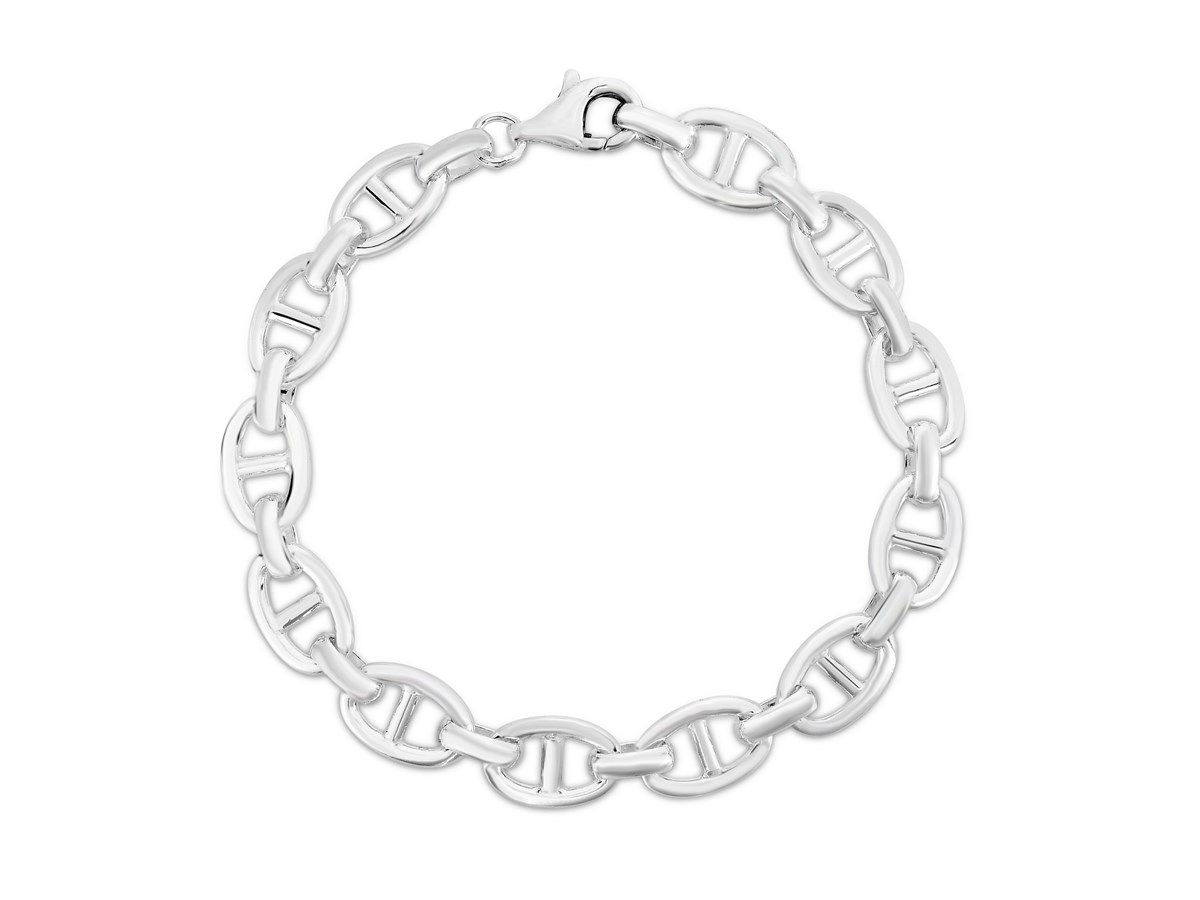 Bold and refined, this Sterling Silver Rhodium Plated Puffed Mariner Bracelet (9.00 mm) delivers a striking, high-polish look with substantial presence. The oversized puffed mariner links offer smooth dimension and a sleek, sculptural finish, while the rhodium plating enhances durability and provides a bright, tarnish-resistant shine. Perfect for making a statement in everyday style or elevating special occasions, this bracelet is a timeless and confident addition to any jewelry collection.