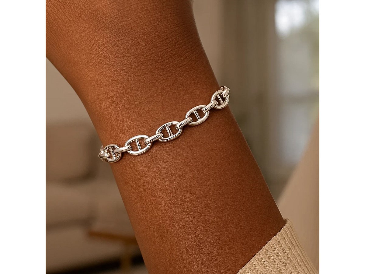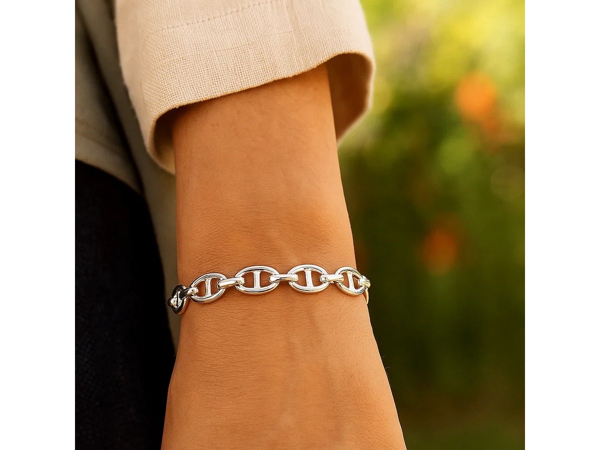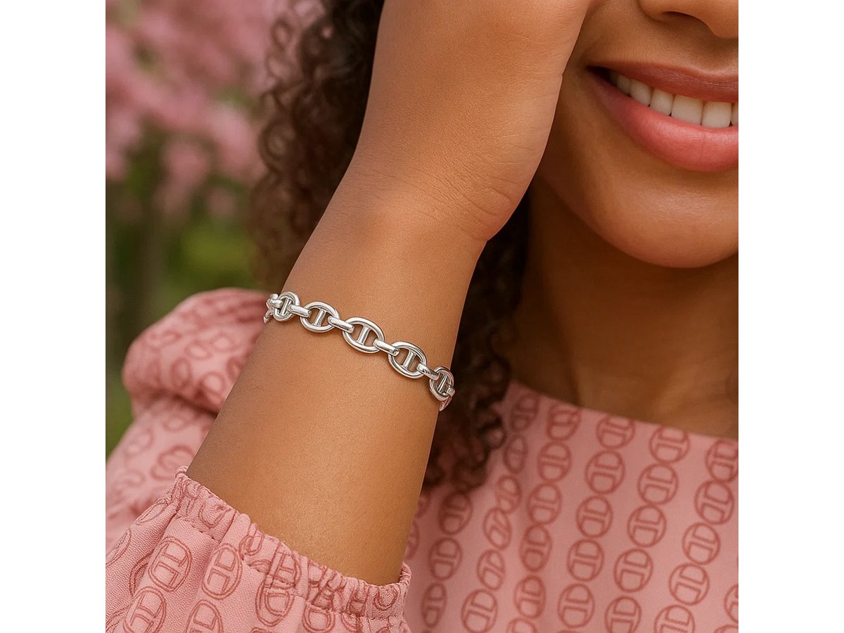 Bold and refined, this Sterling Silver Rhodium Plated Puffed Mariner Bracelet (9.00 mm) delivers a striking, high-polish look with substantial presence. The oversized puffed mariner links offer smooth dimension and a sleek, sculptural finish, while the rhodium plating enhances durability and provides a bright, tarnish-resistant shine. Perfect for making a statement in everyday style or elevating special occasions, this bracelet is a timeless and confident addition to any jewelry collection.