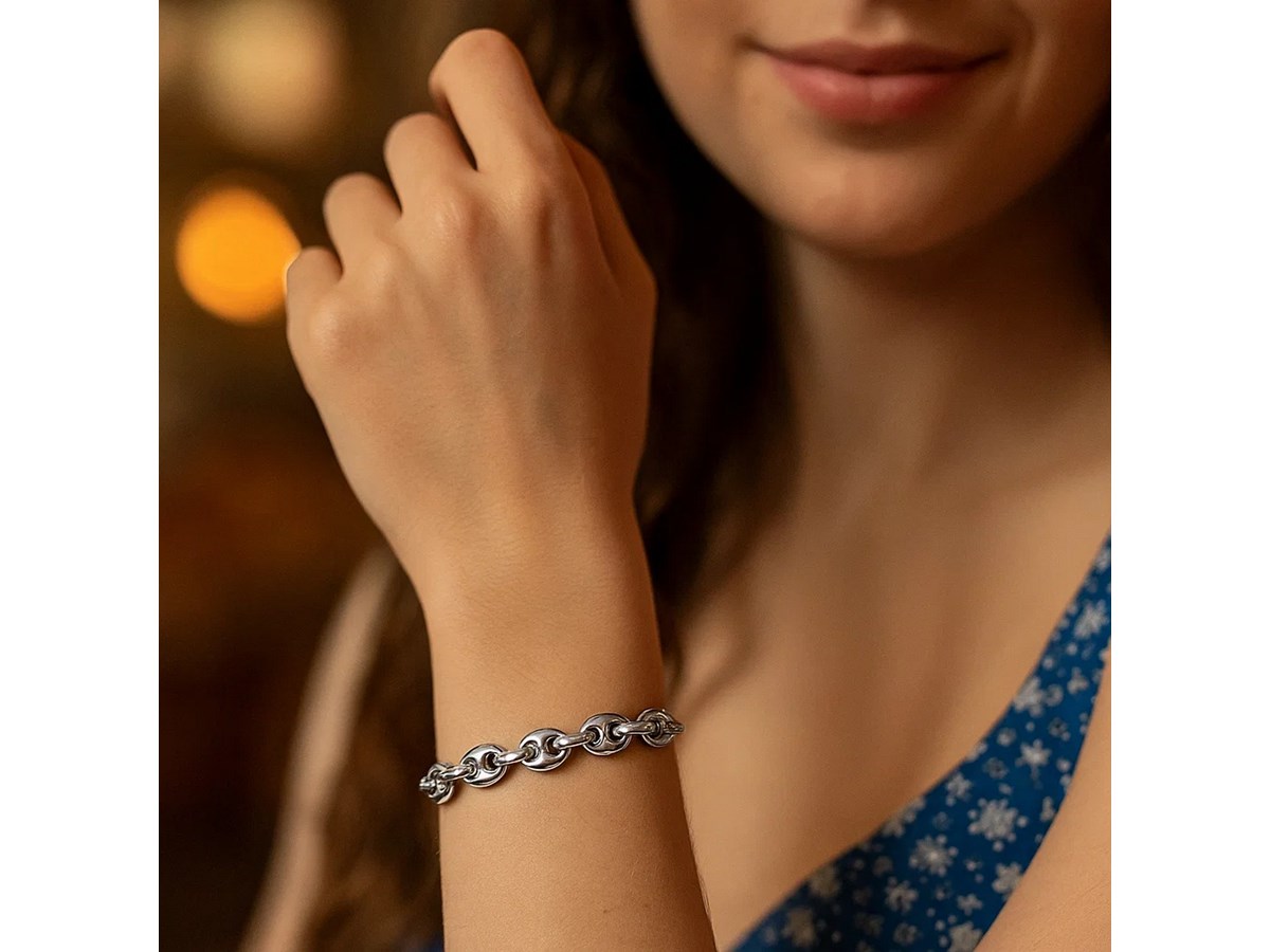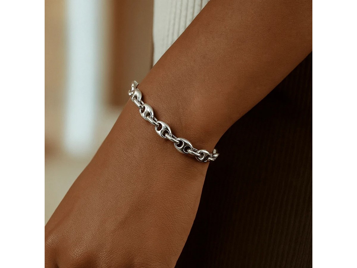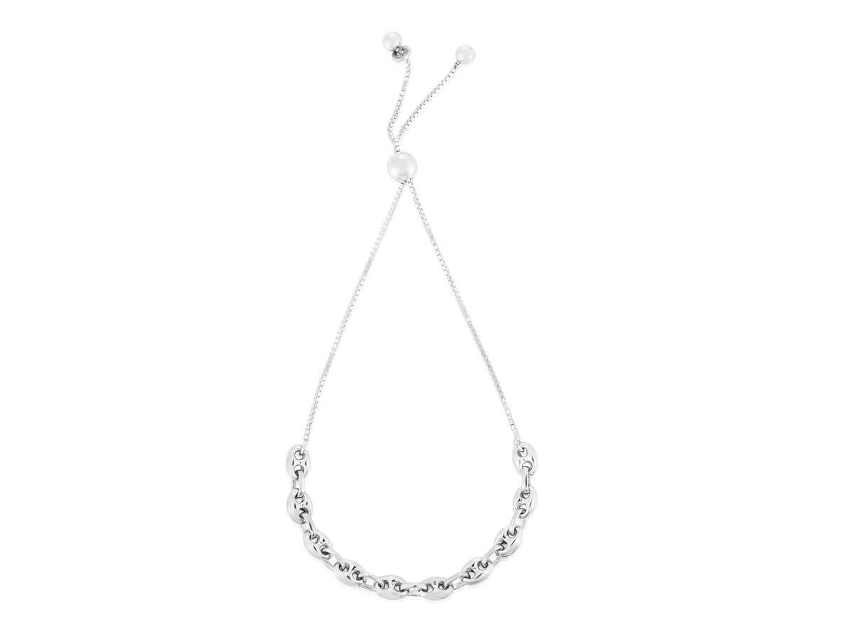 This sterling silver rhodium plated puffed mariner friendship bracelet features polished, dimensional mariner links on an adjustable drawstring chain. Its bright shine and bold yet lightweight design make it perfect for everyday wear, gifting, or layering.