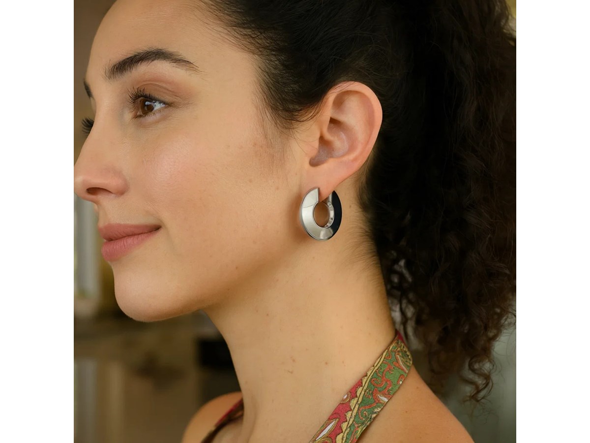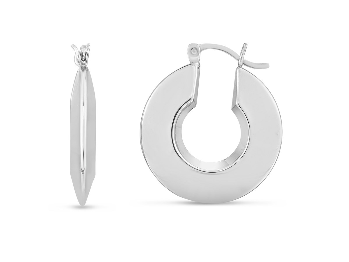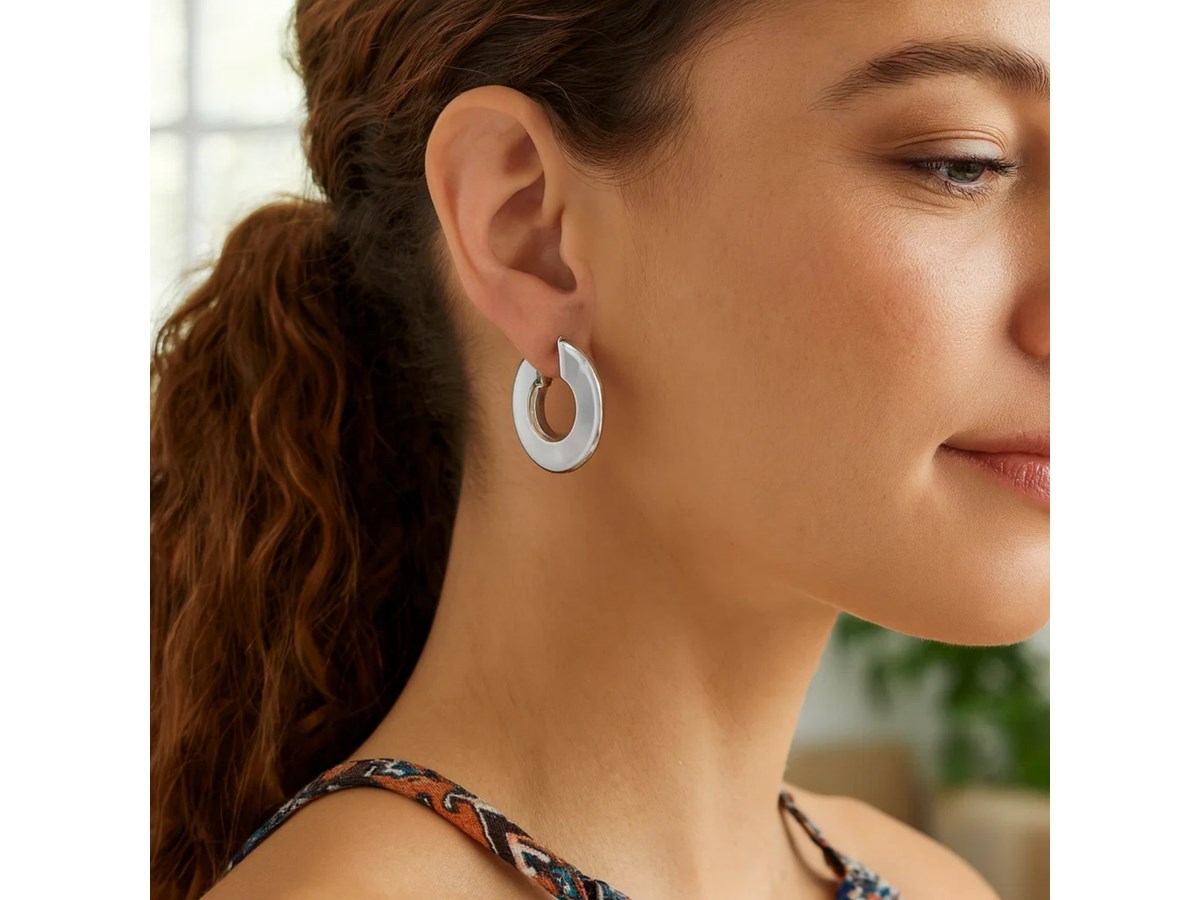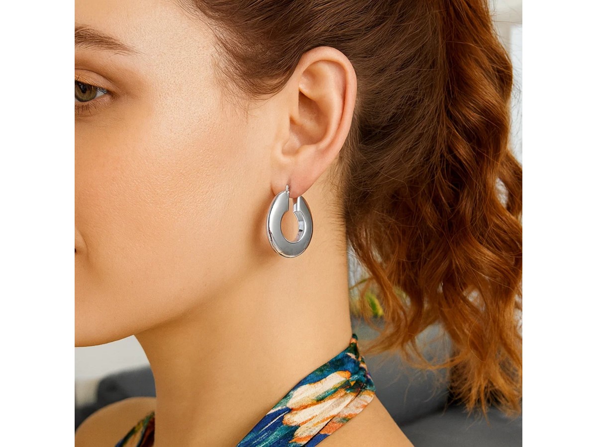 Chic sterling silver rhodium plated small puffed hoop earrings featuring a smooth, rounded design with a radiant polished finish. The puffed silhouette offers subtle elegance and shine, while the rhodium plating ensures lasting brilliance and everyday sophistication.