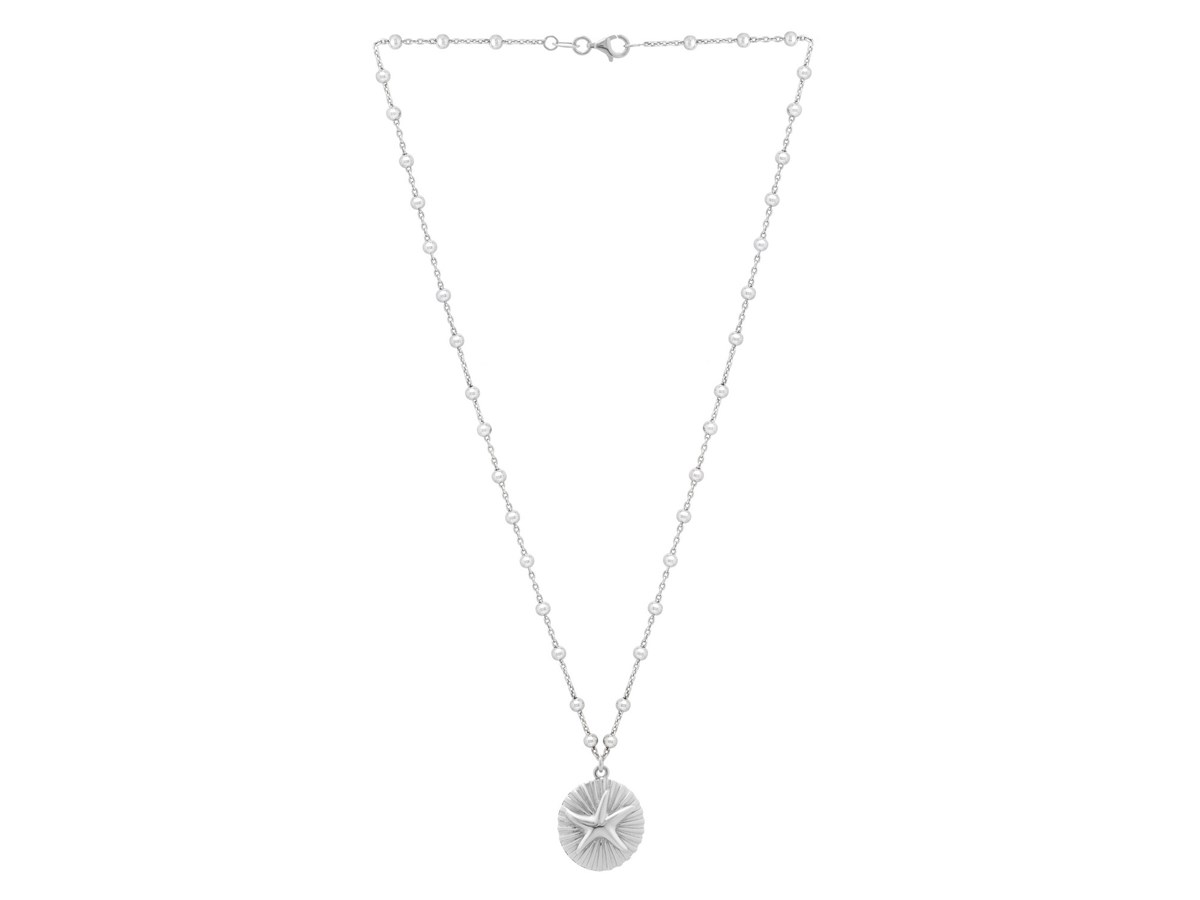 This necklace features a beautifully crafted starfish medallion finished in rhodium-plated sterling silver for a bright, lasting shine. Elegant and coastal-inspired, it brings a touch of seaside charm to any outfit.