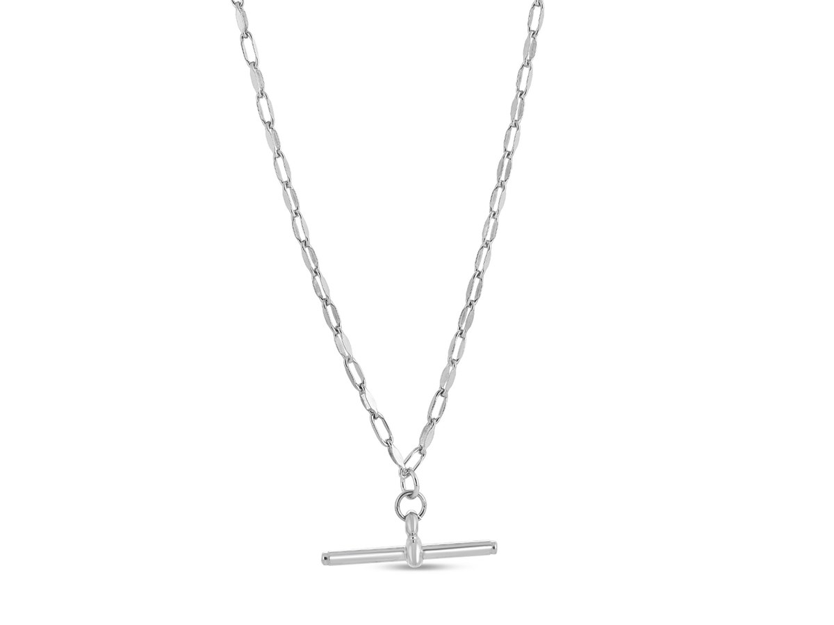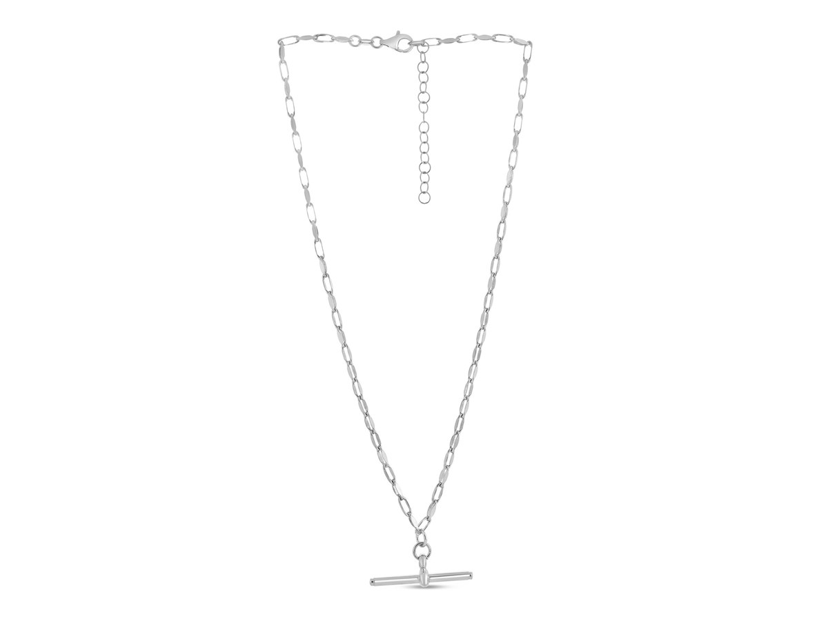 Elevate your everyday style with this Sterling Silver Rhodium Plated Toggle Link Necklace. Featuring bold, contemporary links and a chic front toggle closure, it shines with a sleek rhodium finish for modern elegance. Perfect for layering or wearing solo as a standout piece.