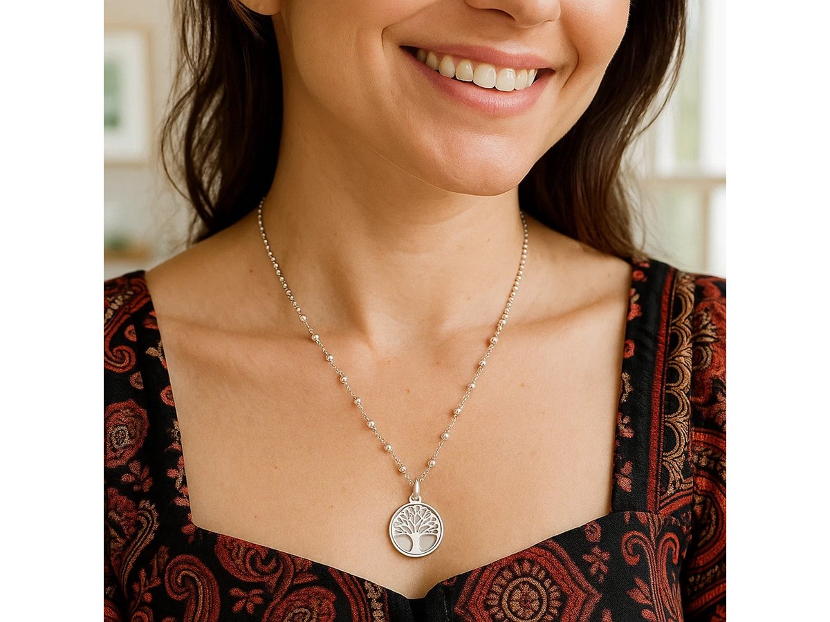 Celebrate growth and harmony with this Sterling Silver Rhodium Plated Tree of Life Pendant Necklace. Featuring a beautifully detailed tree motif on a radiant rhodium-plated chain, it offers timeless symbolism and everyday elegance. Perfect for meaningful gifting or adding a touch of inspiration to any look.