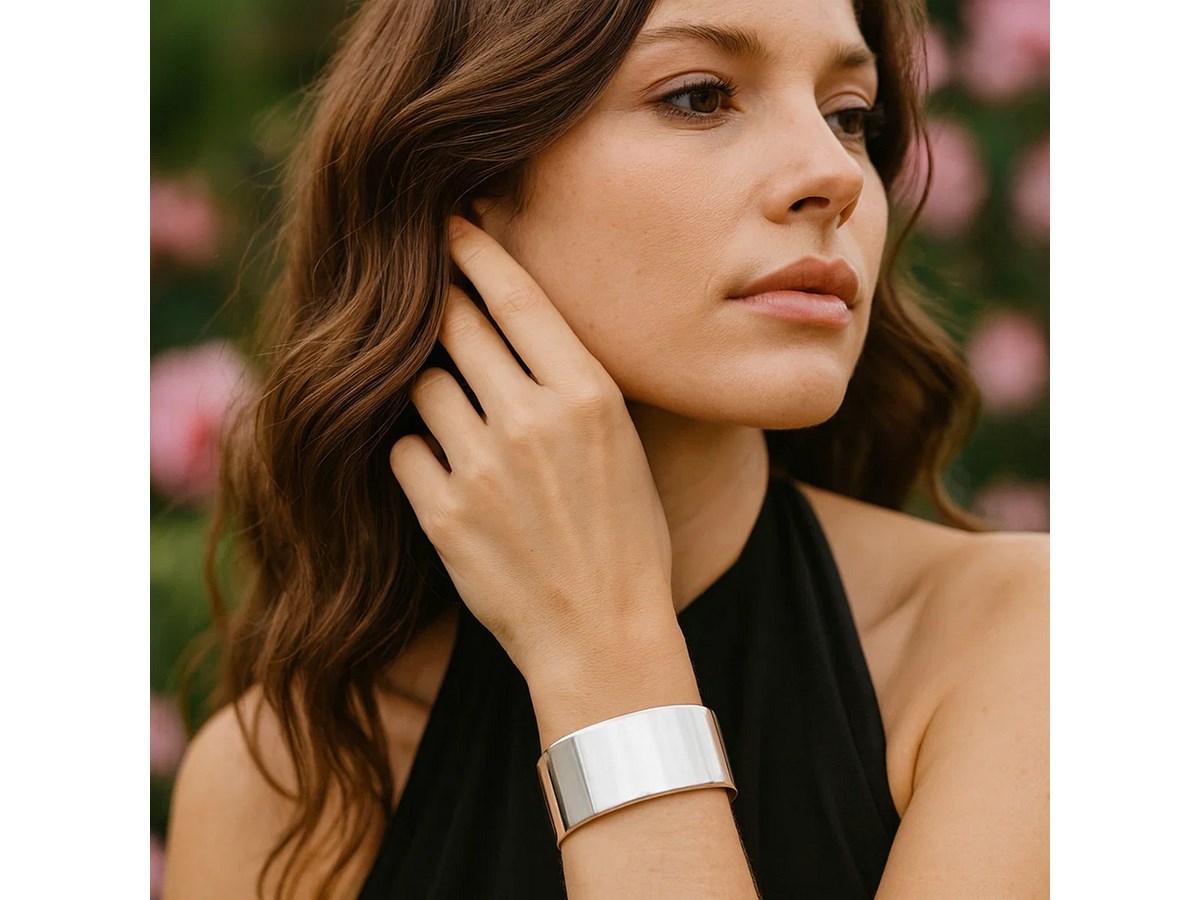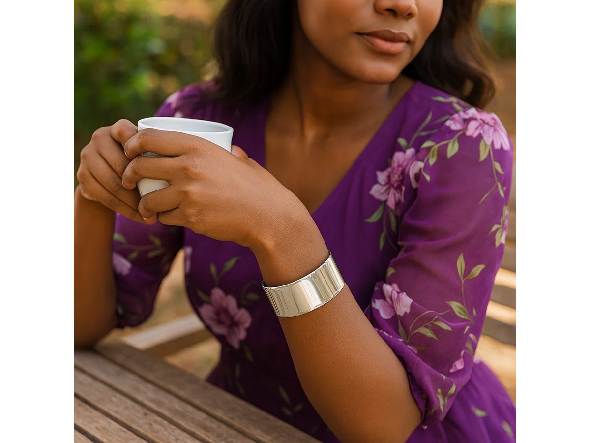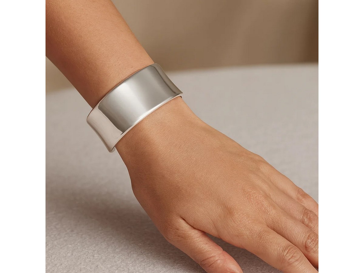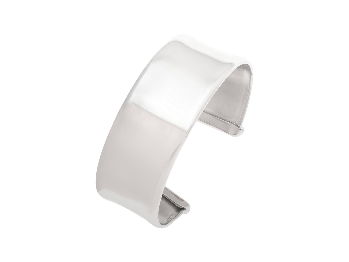 Sterling Silver Rhodium-Plated Wide Sculpted Cuff Bangle featuring a bold, fluidly sculpted design crafted in sterling silver with a bright rhodium finish for enhanced shine and durability. Its wide cuff silhouette creates a modern, artistic statement while offering comfortable, easy wear.