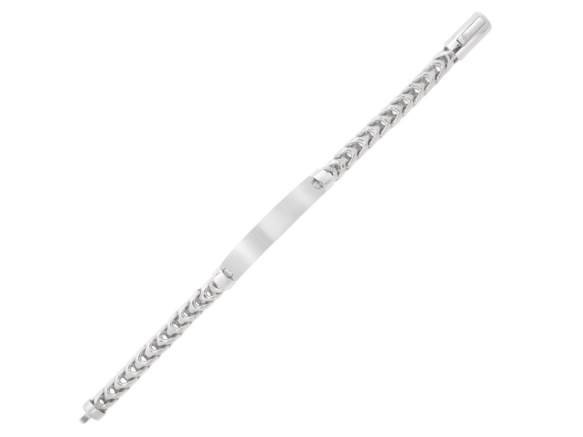 Sterling Silver Rhodium Plated Woven Link ID Bracelet